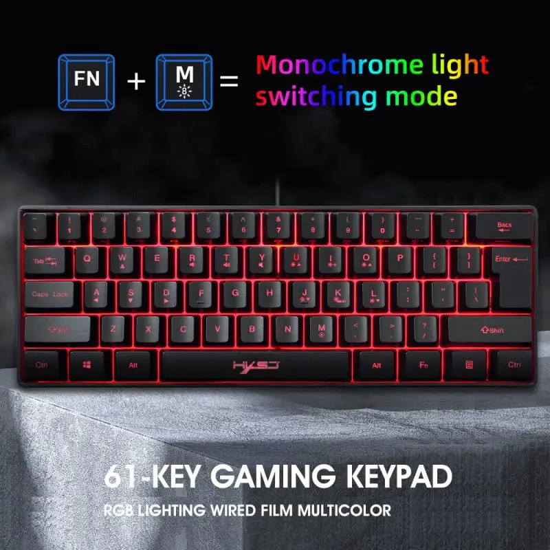 Проводная игровая клавиатура, механическая USB-клавиатура с подсветкой, 61 клавиша, RGB подсветка, с русской раскладкой