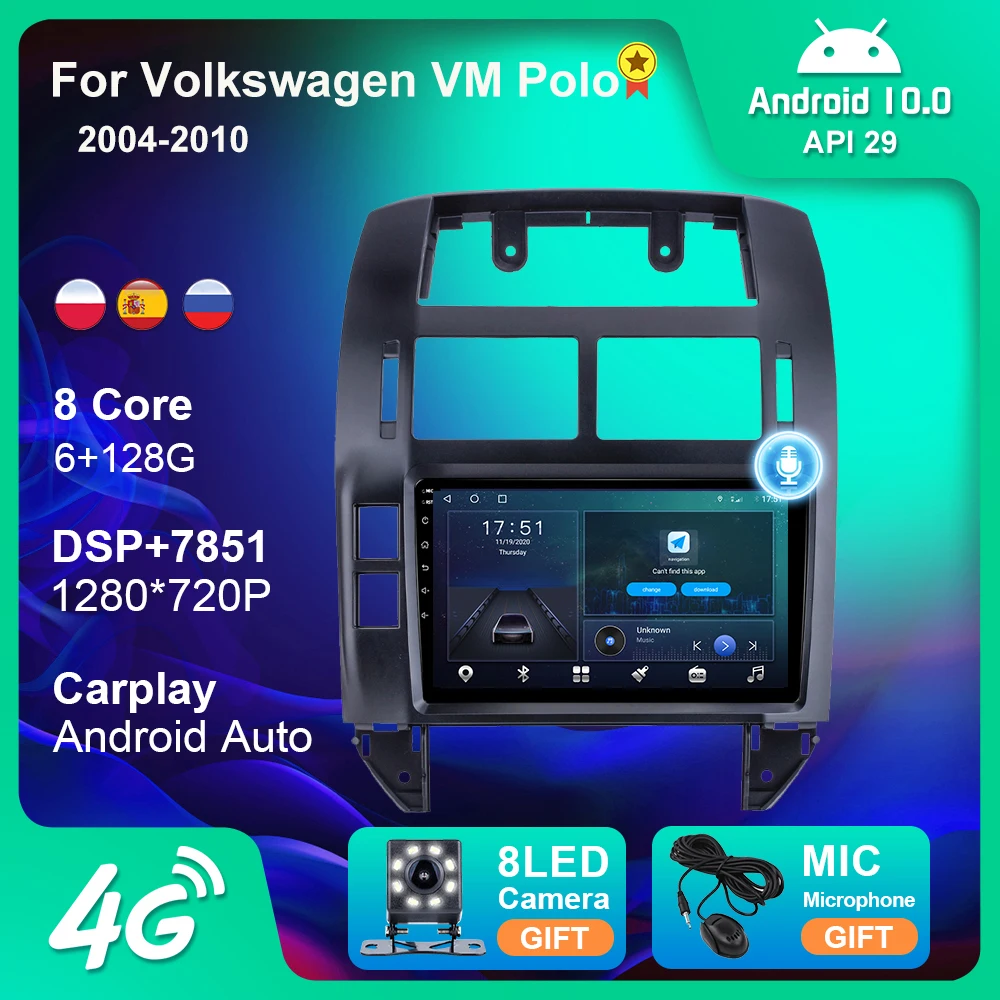 Автомобильный мультимедийный проигрыватель на Android 10, 4G, Wi-Fi...