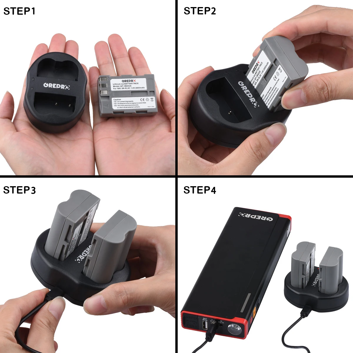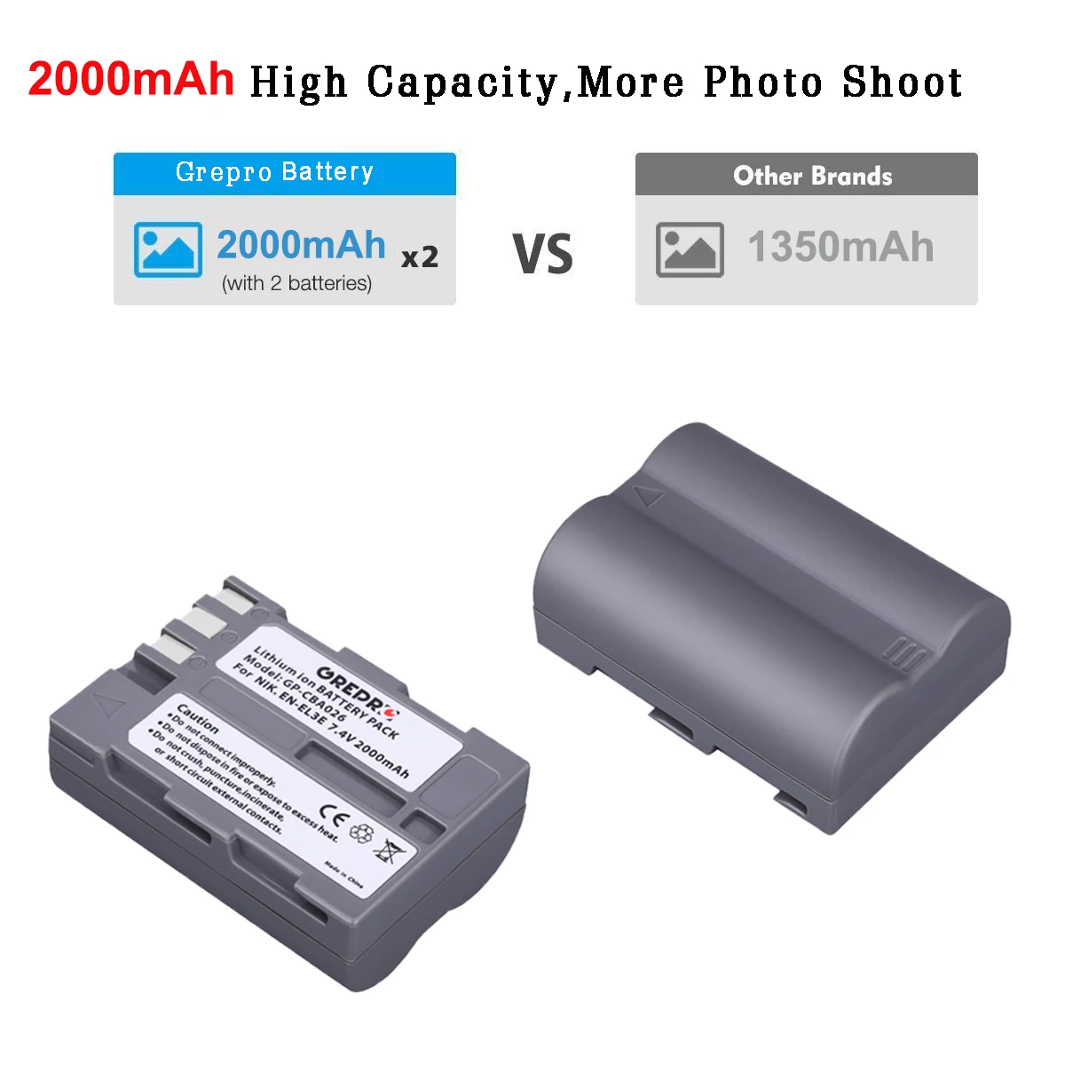 Аккумулятор EN-EL3e 2000 мАч + двойное зарядное устройство