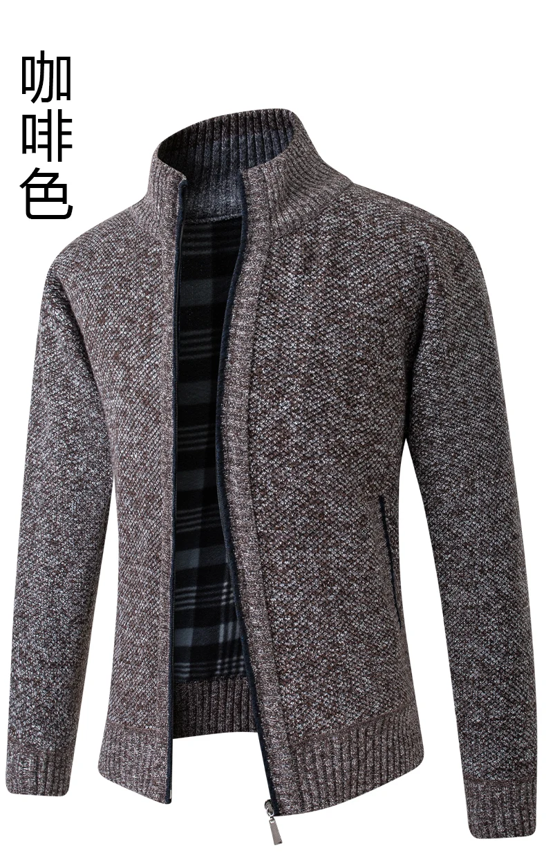 Мужской новый флисовый кардиган, осенне-зимняя теплая куртка, вязан...