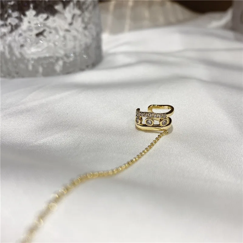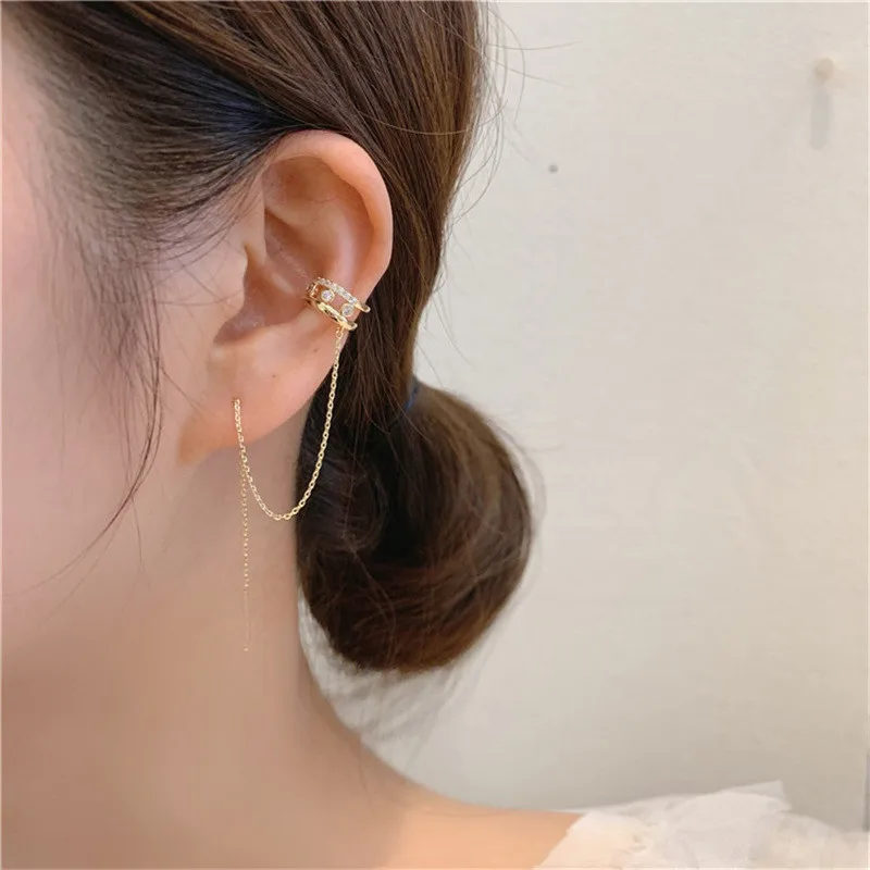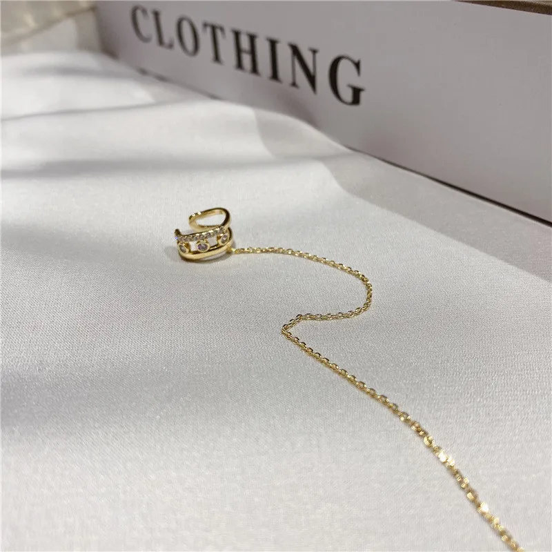 Модные клипсы для ушей, одиночные серьги, звезда, Двойная Цепочка, висячие серьги-каффы для женщин, подарок, луна, кулон, длинные кисточки