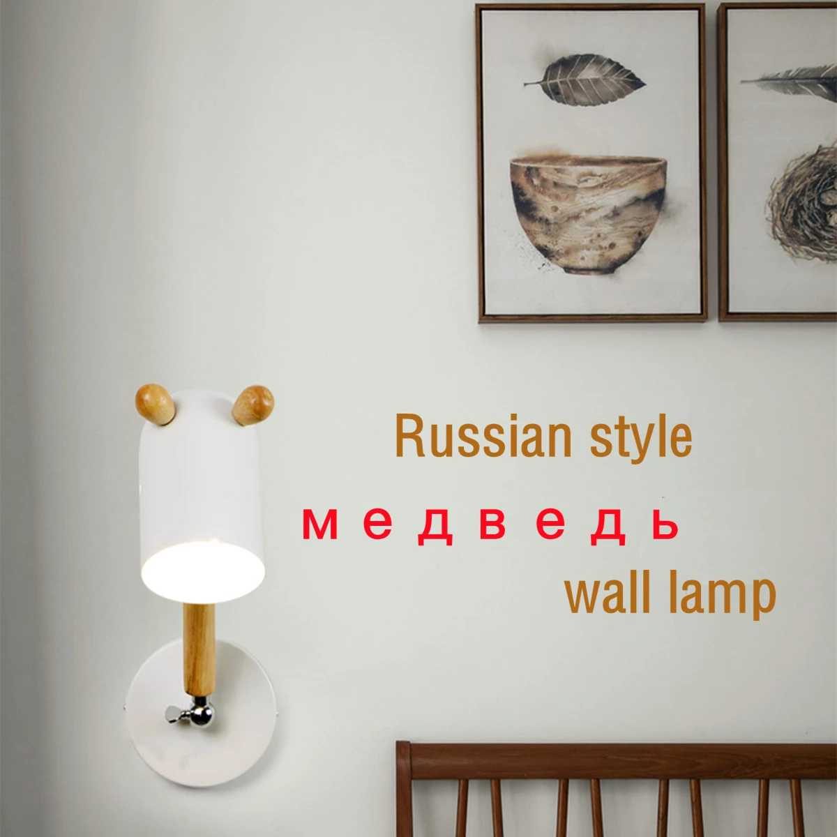 Настенный светильник с изображением российского медведя, креативная декоративная настенная лампа с регулируемым углом для детской, спальни, E27, прикроватная лампа