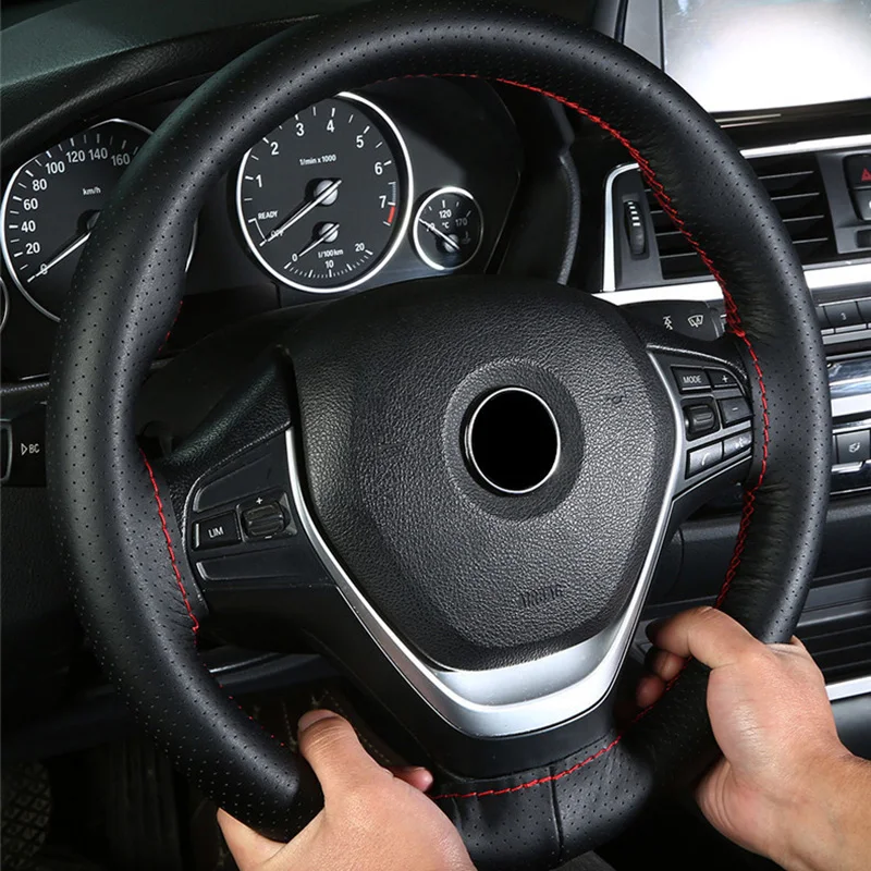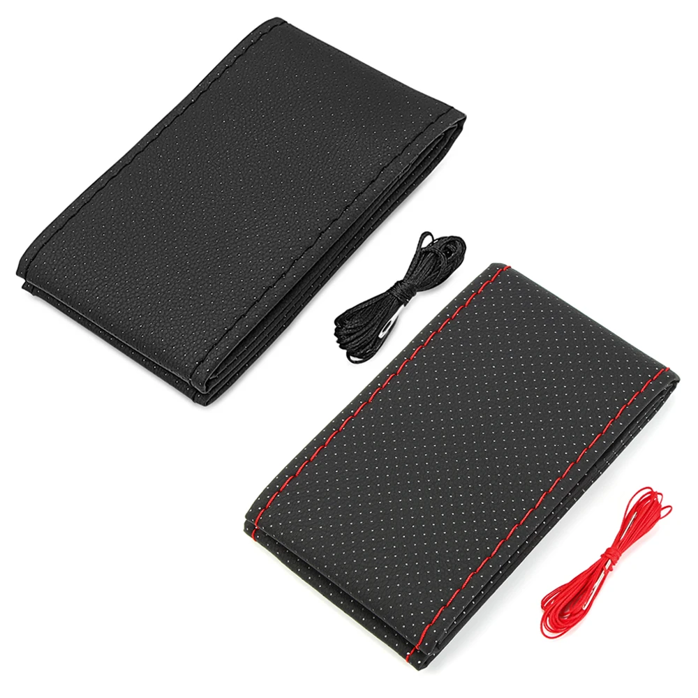 Чехол на руль из искусственной кожи DIY с автомобильными штифтами и тире, чехлы для стайлинга автомобилей