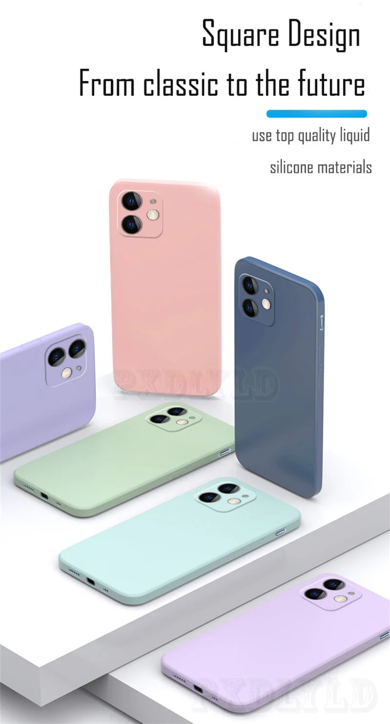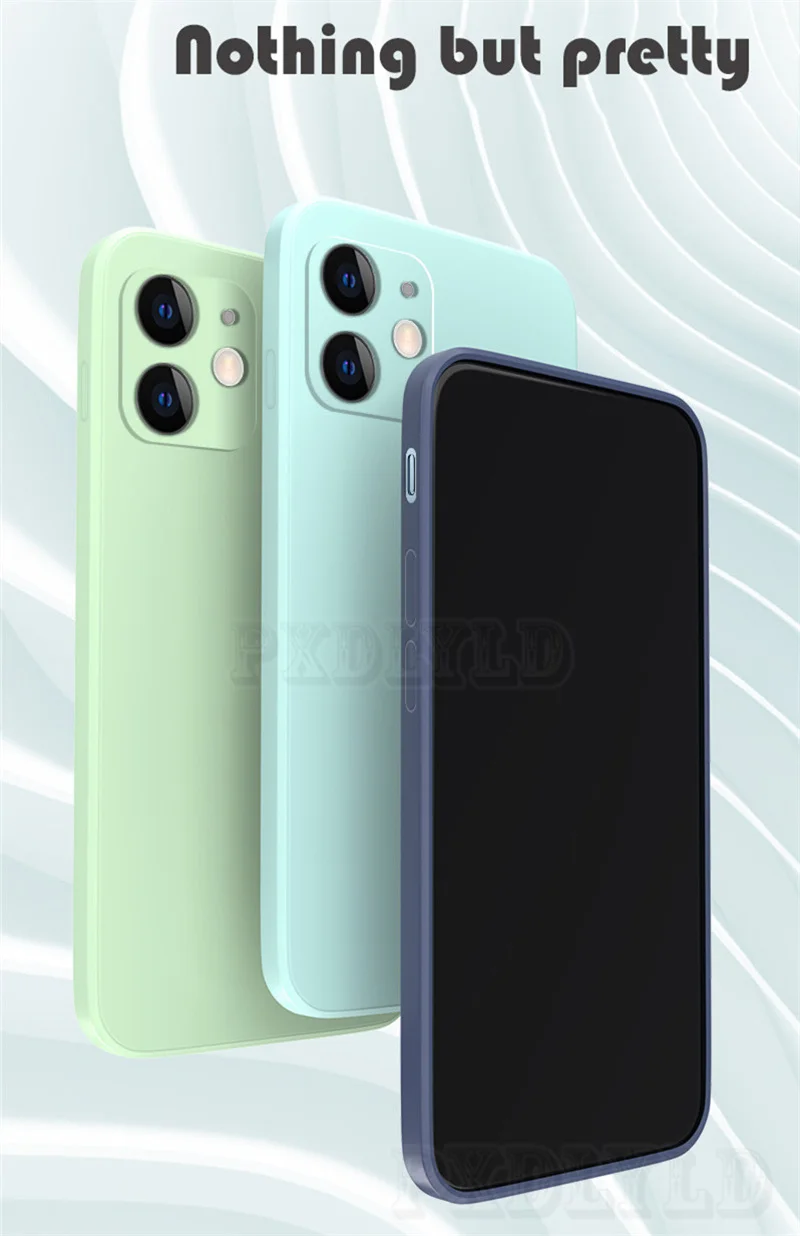 Модный жидкий силиконовый чехол с прямыми краями для iPhone 11 12 1...