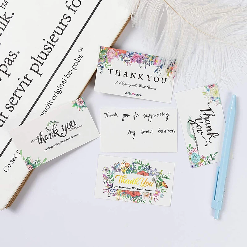 Набор из 50 шт. спасибо за поддержку подарочных открыток для малого бизнеса, красивый цветочный дизайн, бумажные закладки для приглашений