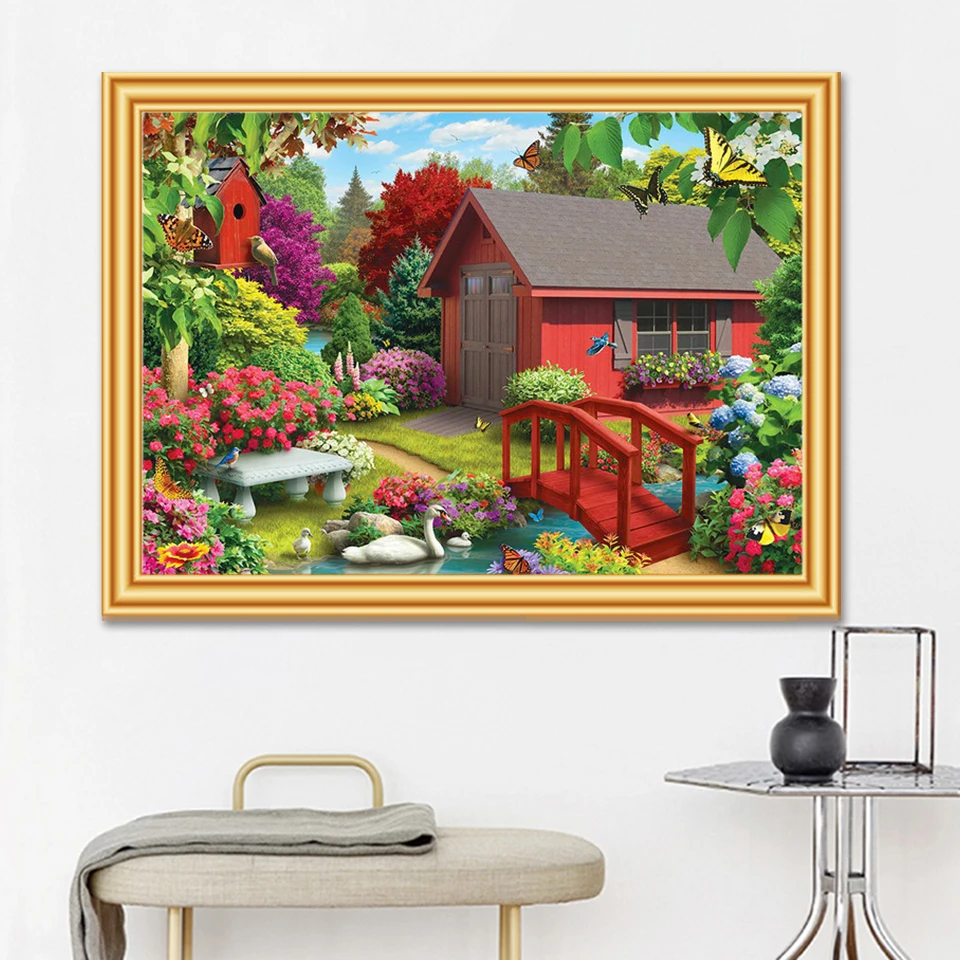 Алмазная 5D картина сделай сам, Набор для вышивки крестиком в виде пейзажа, дома, сада, мозаика для творчества, стразы, Декор
