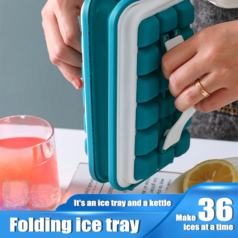 Складной поднос для льда 2 в 1, форма для льда, бар для игры в керлинг, бриллиантовый силикагель, голубой напиток, складная бутылка для воды, 32 ячейки, форма для куба
