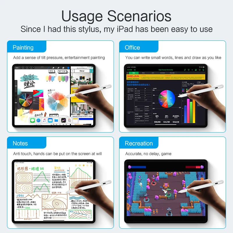 * COMPATIBLE WITH MOST POPULAR DEVICES: iOS/Android/Microsoft device, iPad, iPad Air, iPad Mini, iPad Pro、 Huawei,Lenovo ,Asus,Samsung Galaxy, Nexus,Sony, LG G Pad, HTC、 HP 、Cube、 Chuwi、Teclast Tablet and other touch screen device
