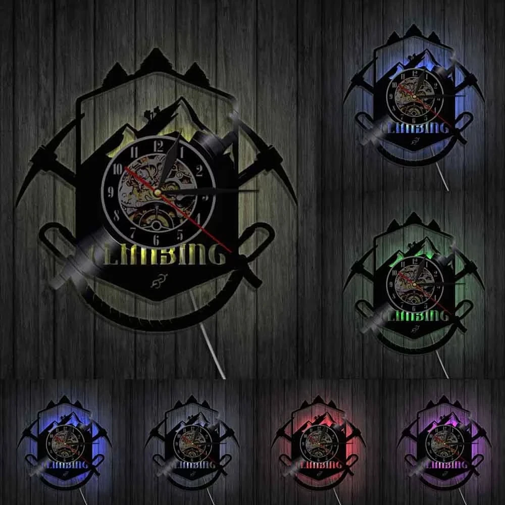 Настенные часы с логотипом для альпинизма, тропы, ледяной топор, оборудование для экстремального спорта, настенные часы с виниловой пластиной, подарок для альпинизма