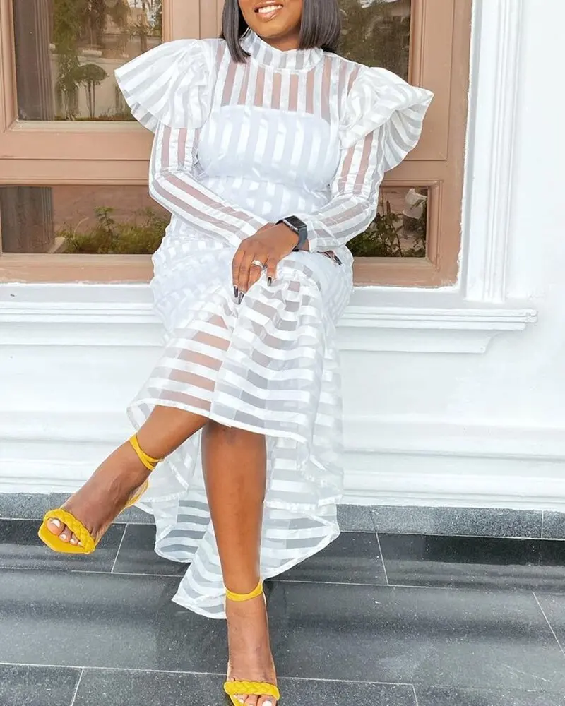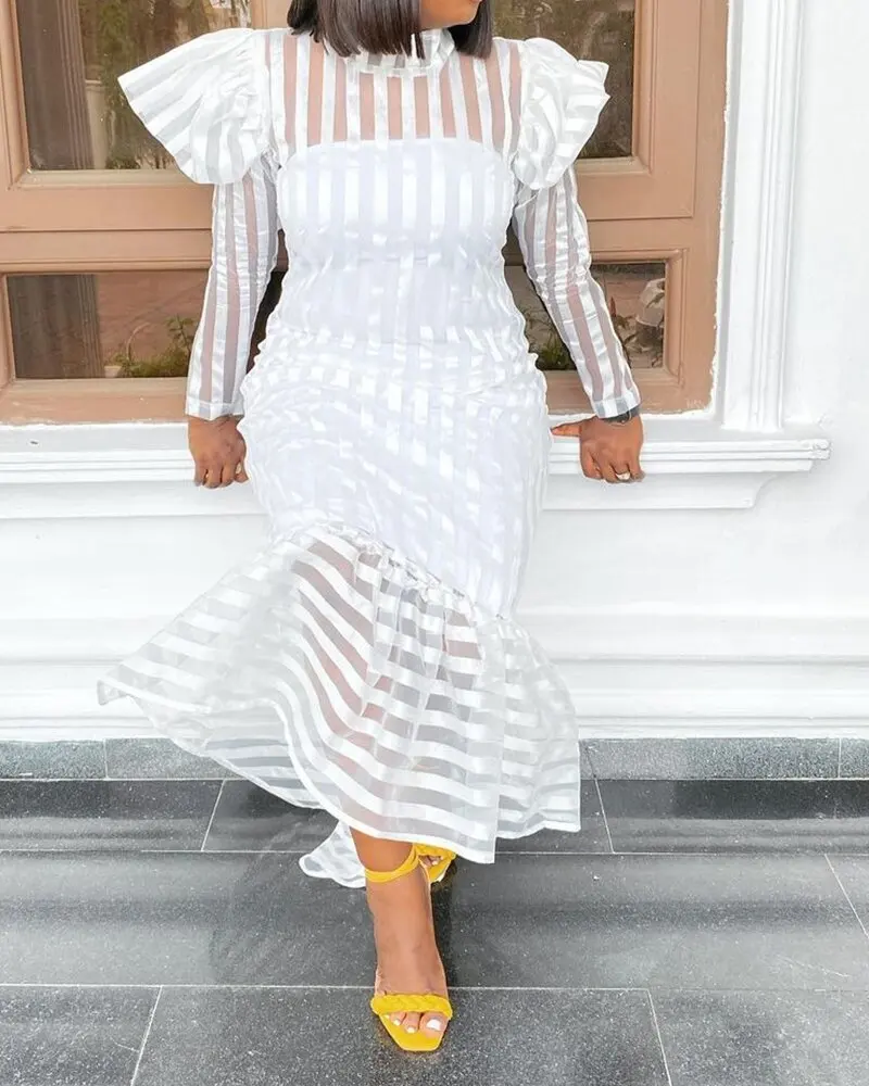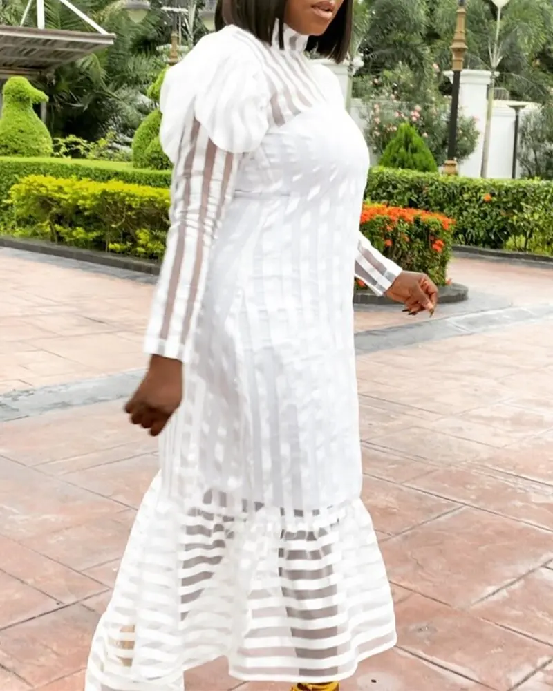 Женское Прозрачное платье с длинным рукавом, белое платье-миди в по...