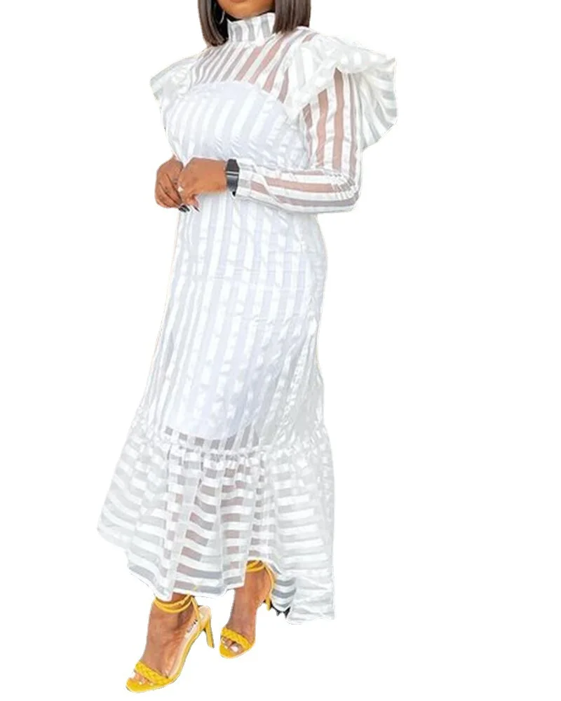 Белое Африканское платье для женщин, Новинка лета 2021, Африканское платье с длинным рукавом, африканская одежда для женщин