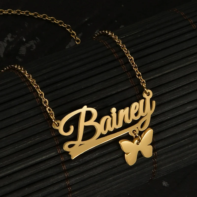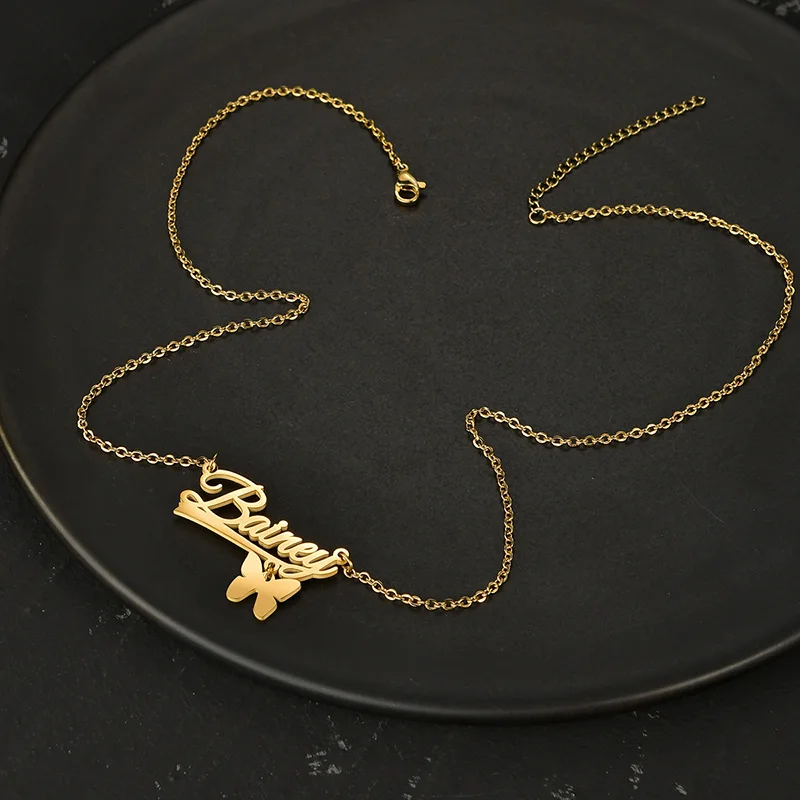 Ожерелье женское с именем бабочки, индивидуальная именная табличка