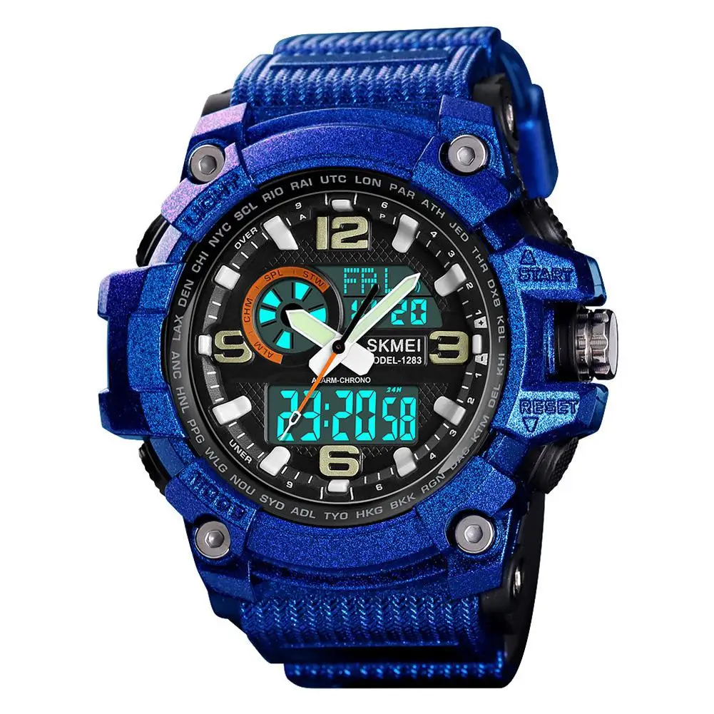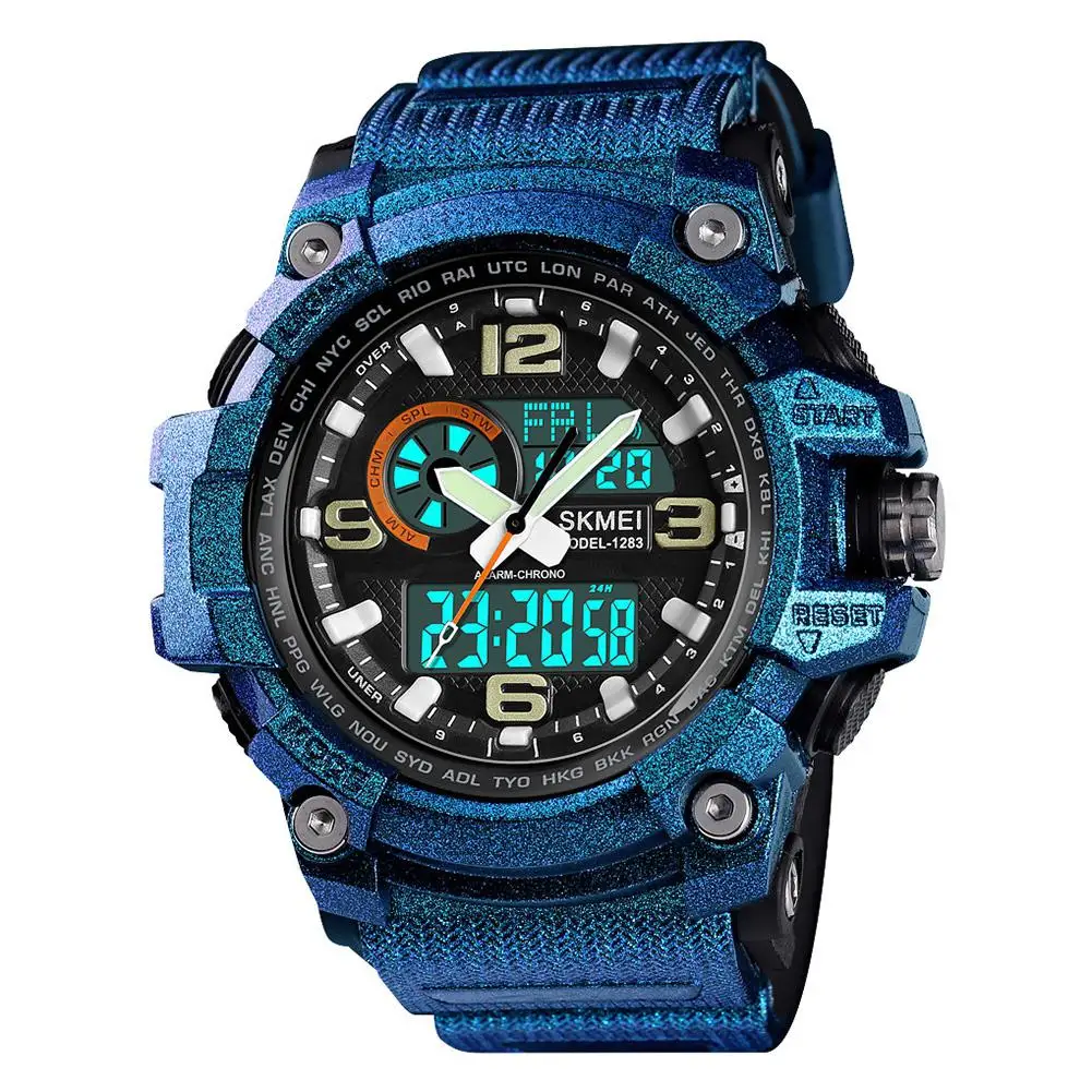 Часы наручные SKMEI мужские с хронографом, многофункциональные модные водонепроницаемые кварцевые с двойным дисплеем, 5 бар, 1283