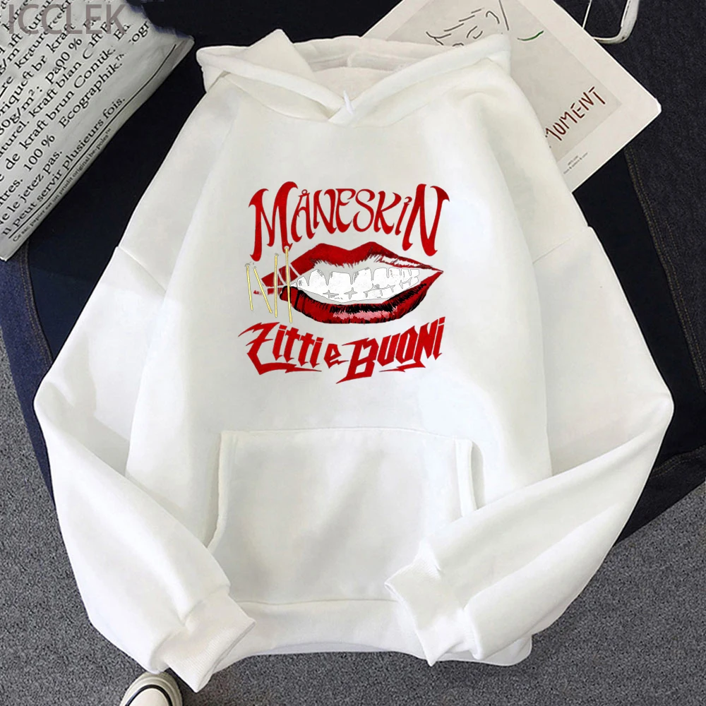 Толстовка Maneskin женская с круглым вырезом, модный Свободный Повседневный свитшот в готическом стиле, флисовые пуловеры в стиле Харадзюку, худи с рисунком на шнурке