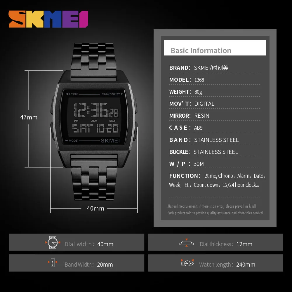 Номер моделиEGF812 stainless steel digital watches SKMEI 1368