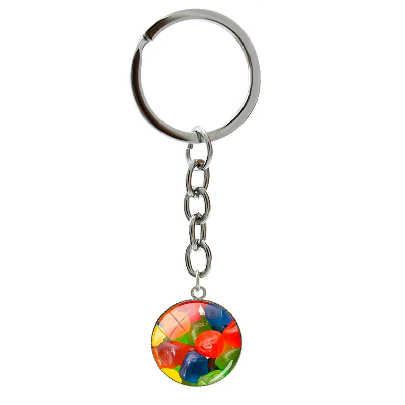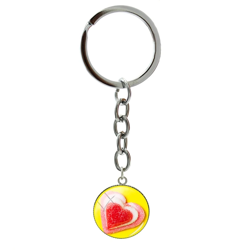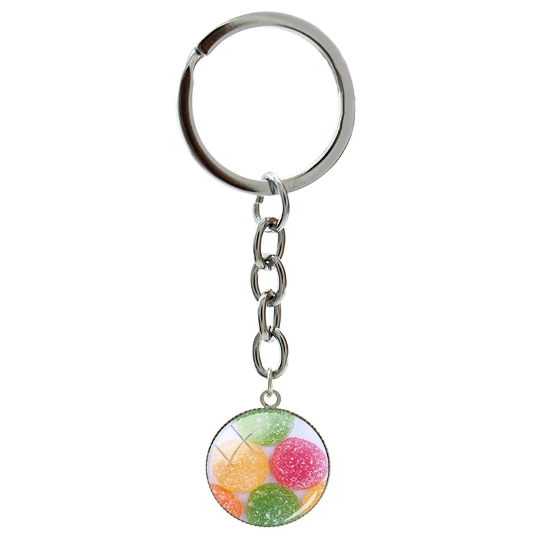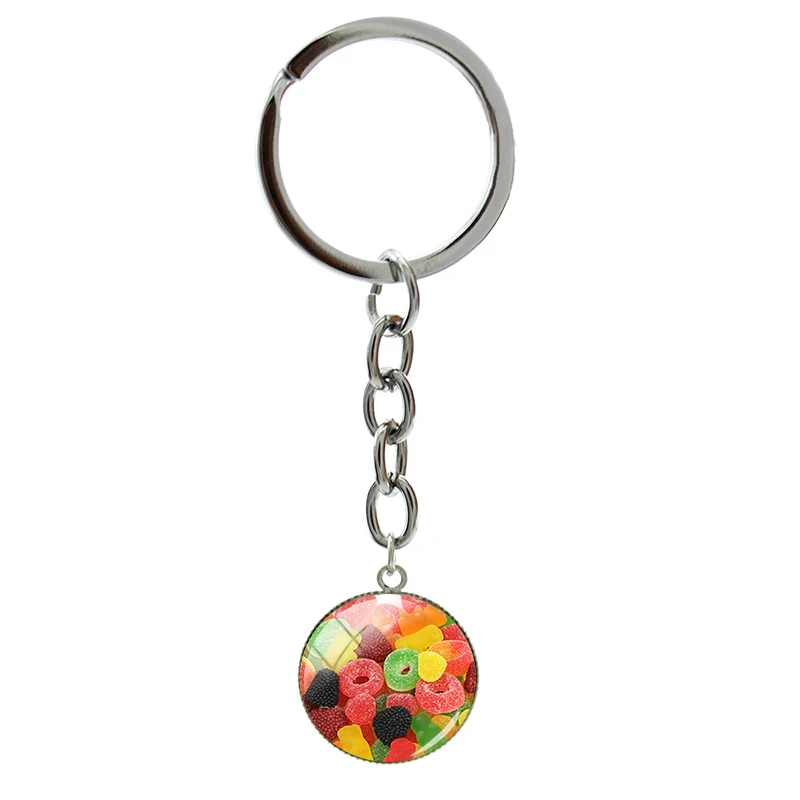 Новый красочный брелок для ключей с изображением десерта Fudge для дочери, изображение сладкой еды, стеклянный кабошон, брелок для ключей, школьная сумка, безделушка