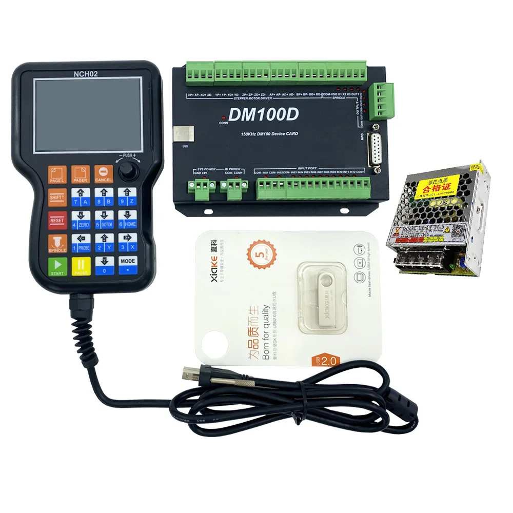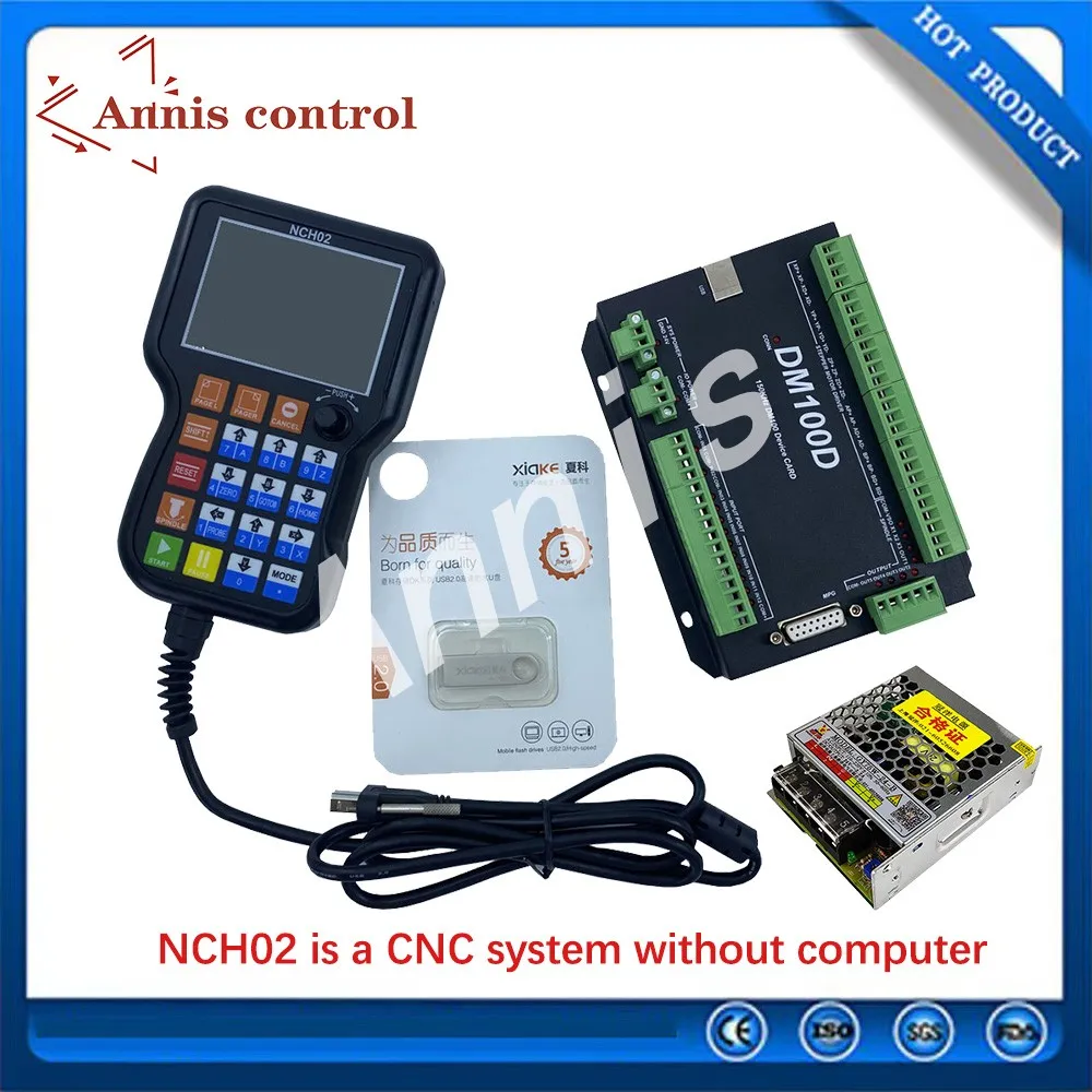 NCH02 ЧПУ контроллер движения с ручкой mach3 3 345 осей 125 кГц Импульс + 24 в 75 Вт импульсный источник питания MEANWELL + U-диск для чтения параметров