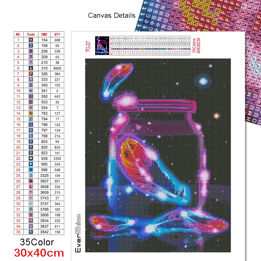 1. См. Таблицу сравнения на холсте, чтобы определить каждый номер алмаза, который соответствует области печати на холсте.