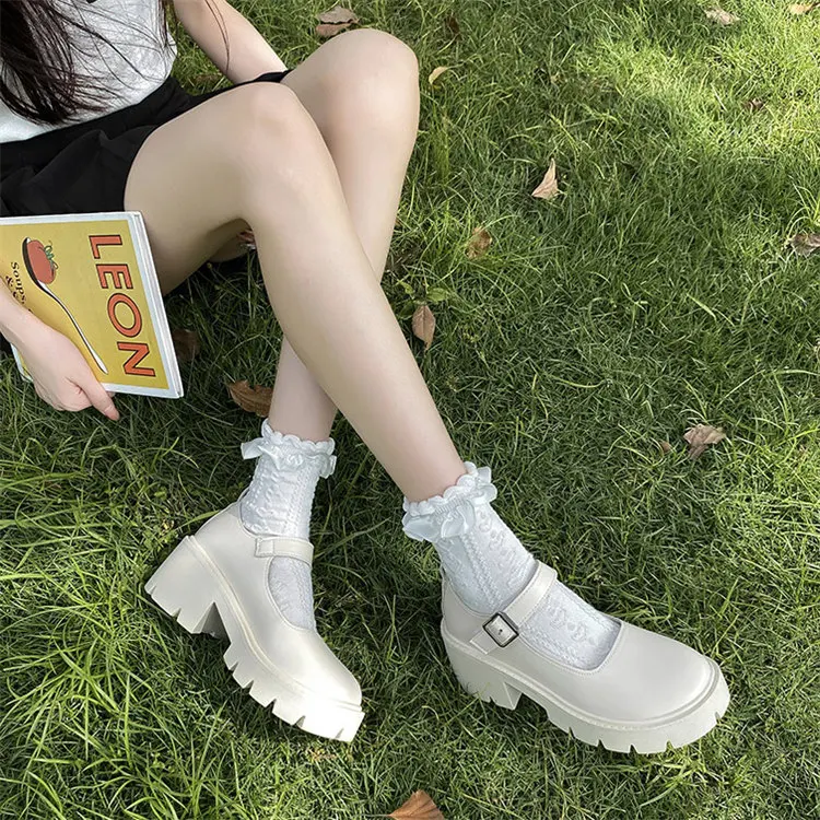 Туфли женские мягкие на платформе, водонепроницаемые, в японском стиле