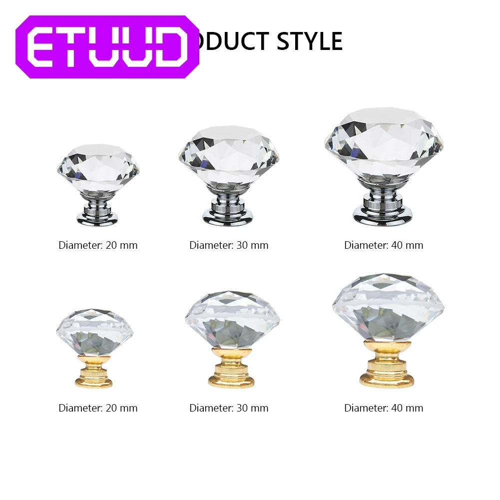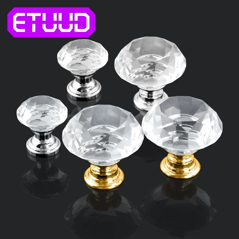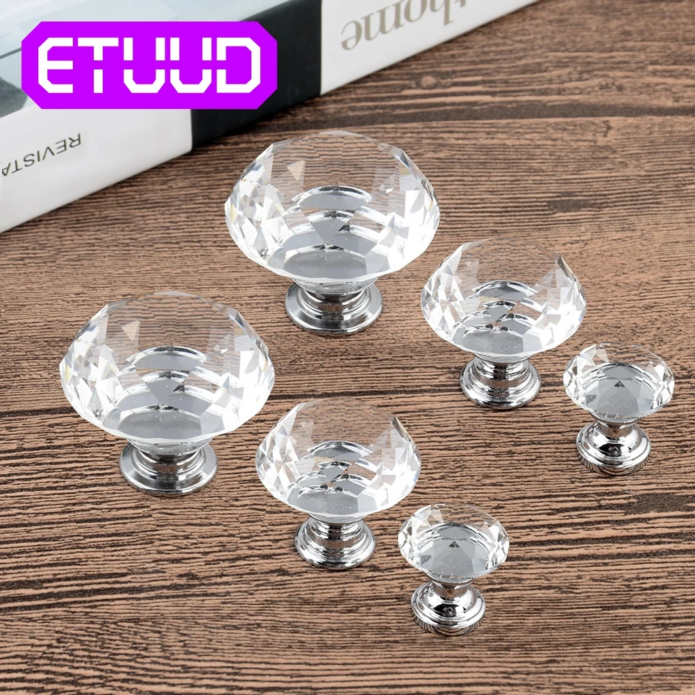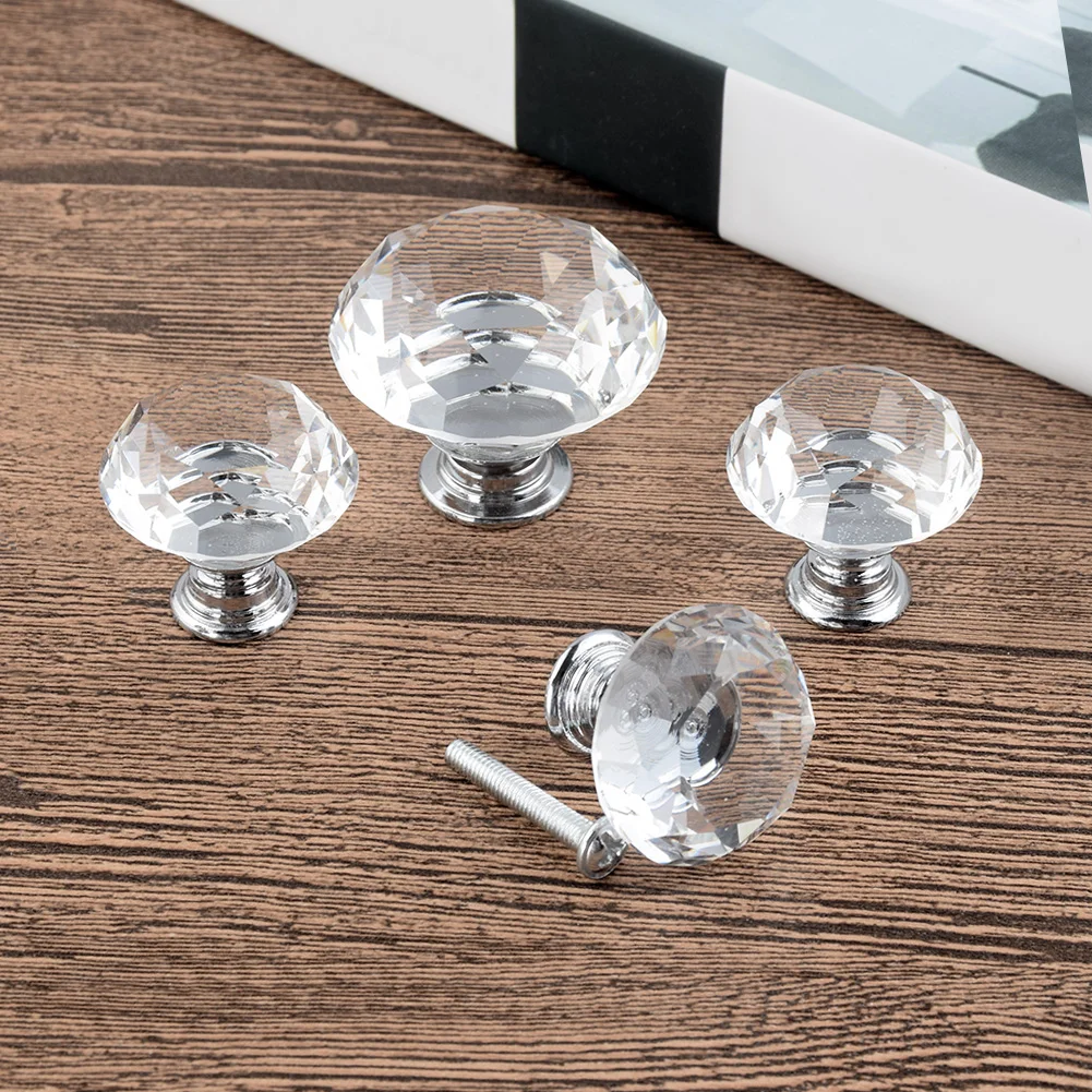 20 30 40mm Diamond Shape Design Crystal Glass Knobs Cupboard Drawer Pull Kitchen Cabinet Door Wardrobe Handles Hardware