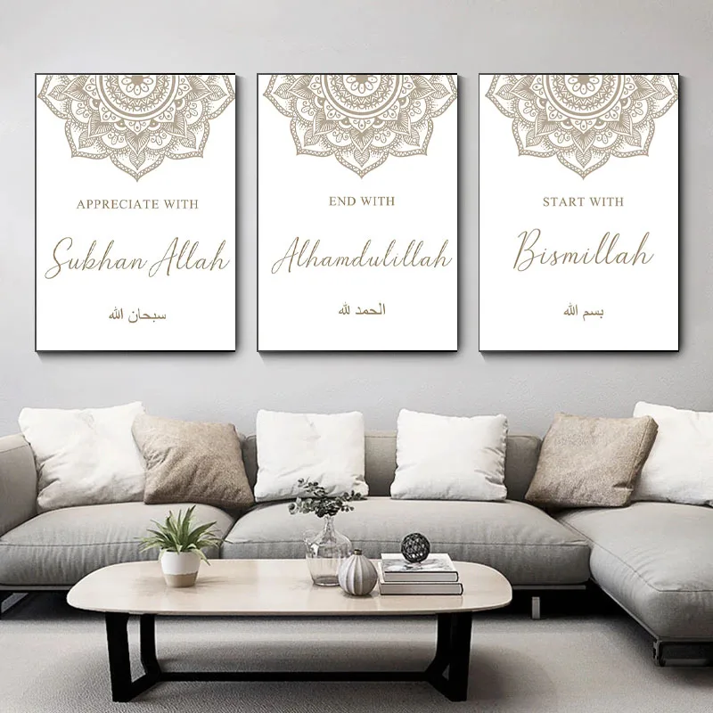 Современный мусульманский плакат Бисмиллах Бохо бежевый цветочный х...