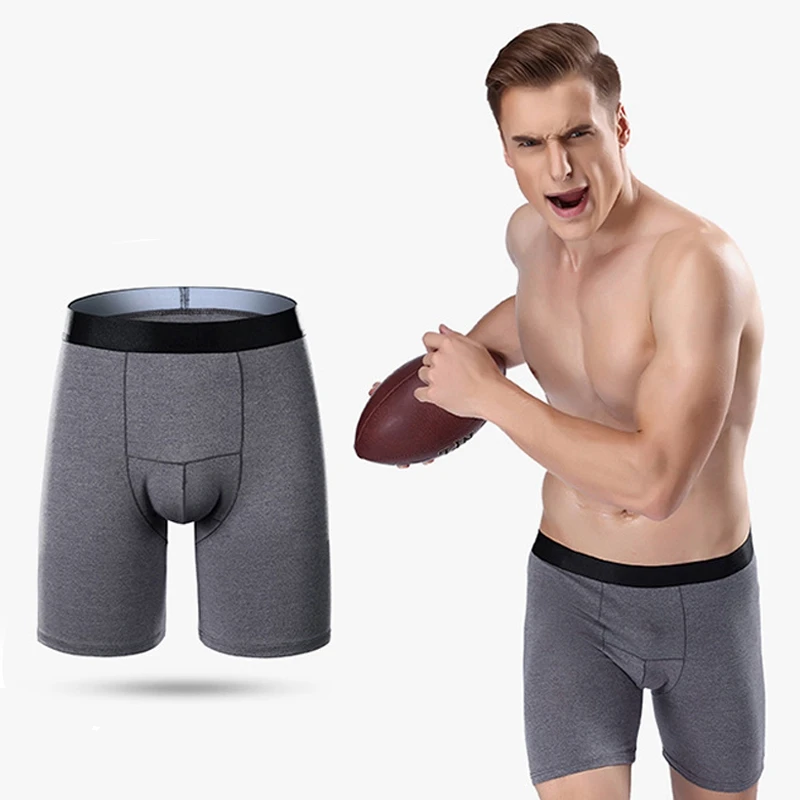 Мужское нижнее белье, длинные трусы-боксеры для мужчин, сексуальные трусы, мужские шорты-боксеры, спортивные шорты для фитнеса, серая одежда для сна