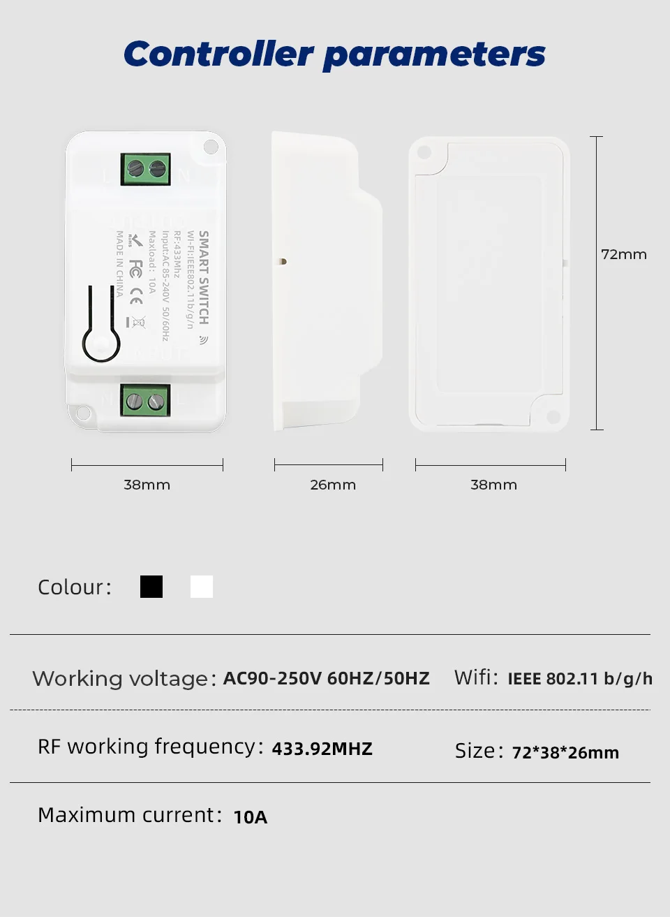 Controller working frequency:433.92MHZ +2.4GHz WIFI