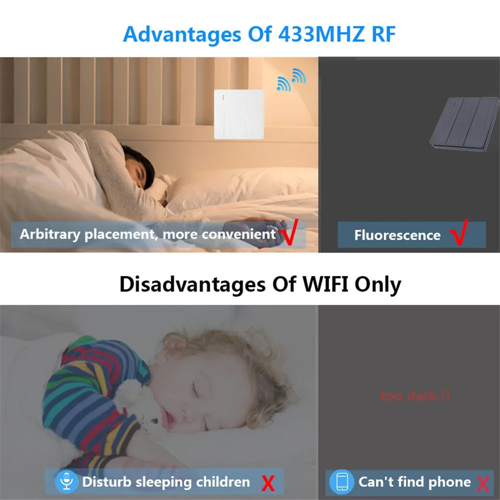 Беспроводной переключатель не имеет функции Wi-Fi, только функция RF433MHZ контроллер имеет WIFI + RF433MHZ + Приложение + голосовую функцию