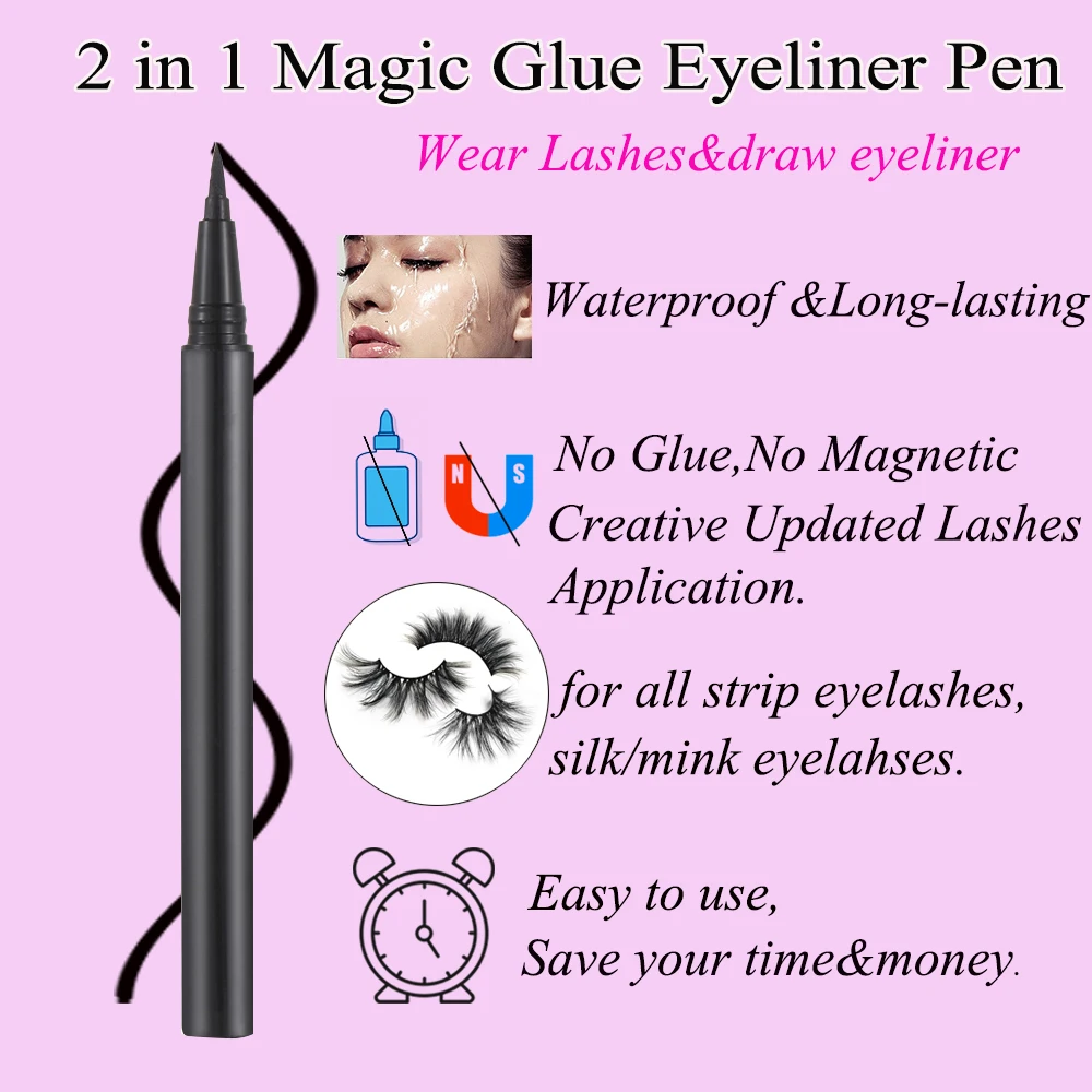 Самоклеящаяся подводка для глаз, 3 в 1, волшебный клей для ресниц, подводка для глаз без клея, магнитная, водостойкая, стойкая, быстросохнущая, макияж для глаз