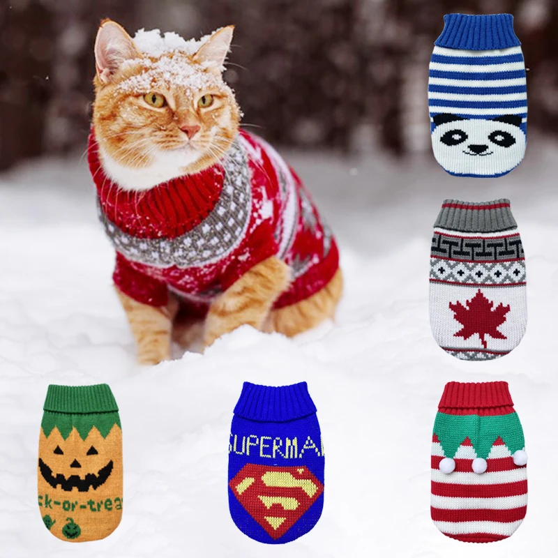 Мультяшный свитер для кошек и собак, Рождественская одежда для дома...
