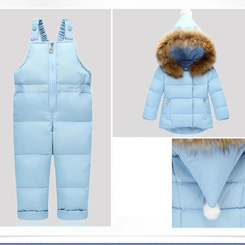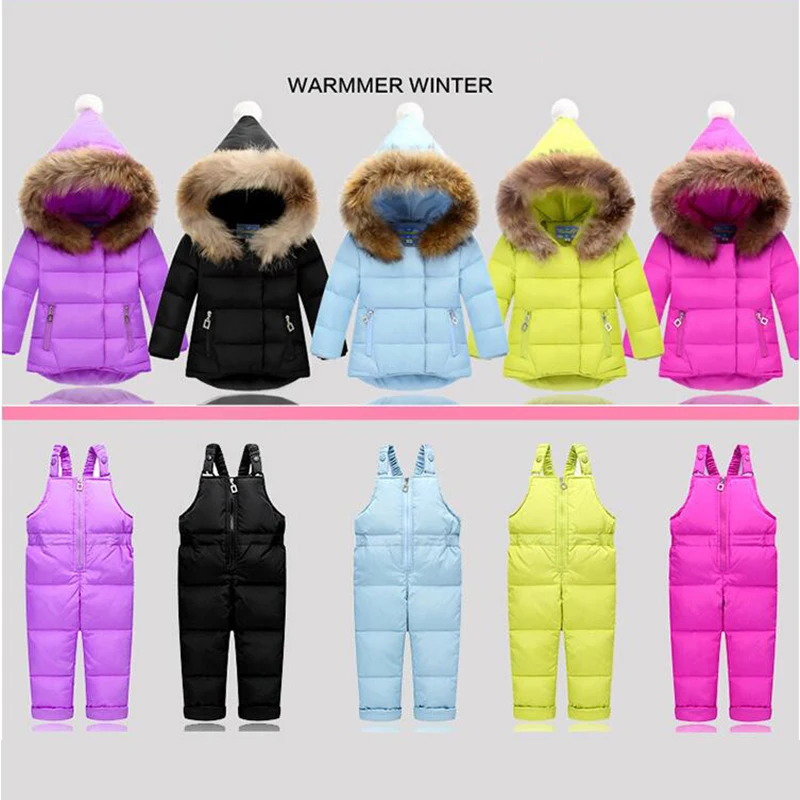 Детский комбинезон на утином пуху, зимняя куртка и штаны для мальчиков и девочек