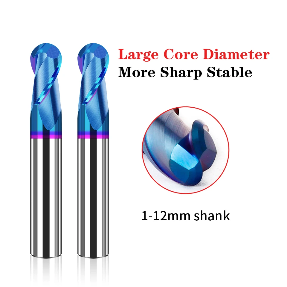Концевые фрезы с шариковой головкой и канавкой, R0.5, R1, R2, 6 мм, 8 мм, 10 мм, из карбида вольфрама, HRC50, 55, 65, 2