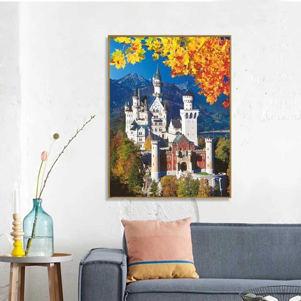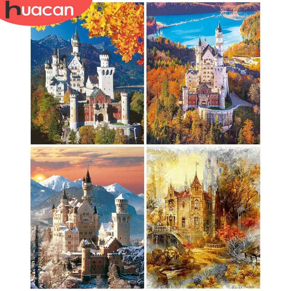 Картина по номерам HUACAN, Настенная картина по номерам с изображением замка, пейзажа, уникальный подарок, ручная роспись акриловыми красками, для осени, гостиной