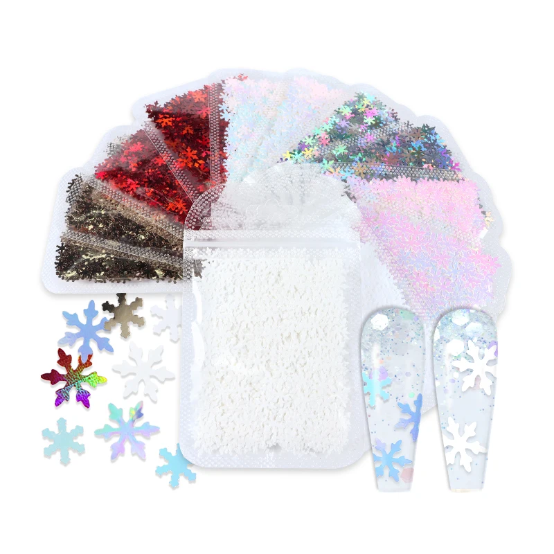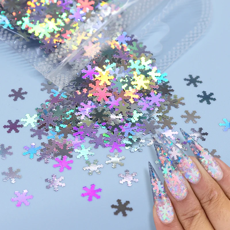 Рождественские снежинки, лазерные блестки для ногтевого дизайна, хл...