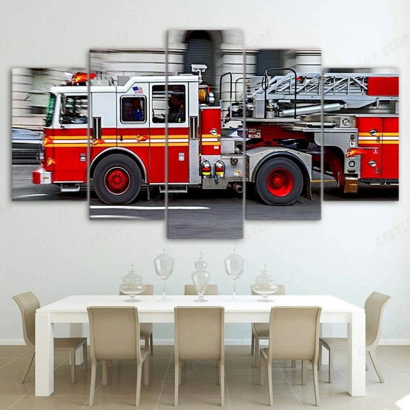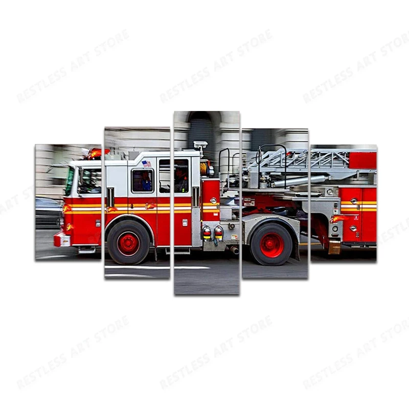 Плакаты с принтом FDNY Engine, пожарная машина, картина, настенное искусство, печать на холсте, плакат, Модульная картина, декор для детской комнаты, современный Artwo, 5 шт.