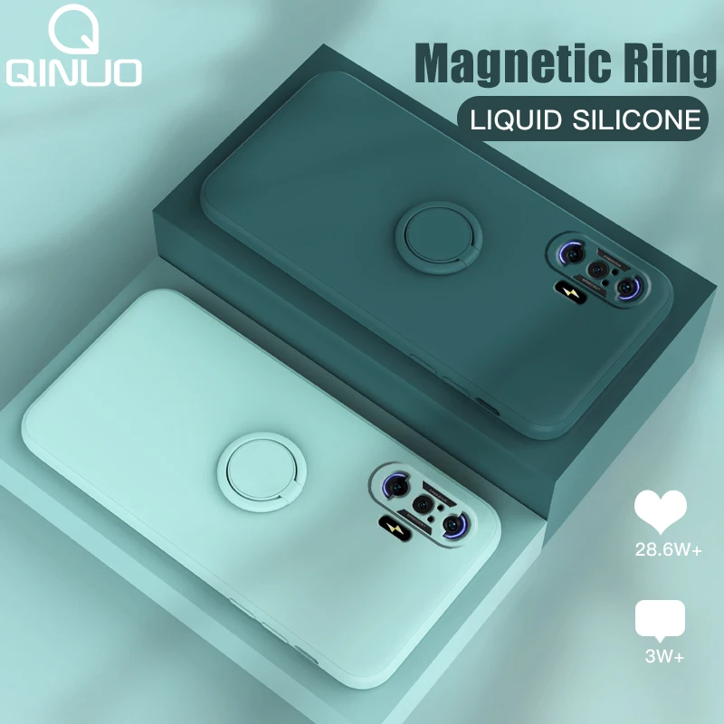 Жидкий силиконовый чехол Pocox3 с кольцом-держателем для телефона X...