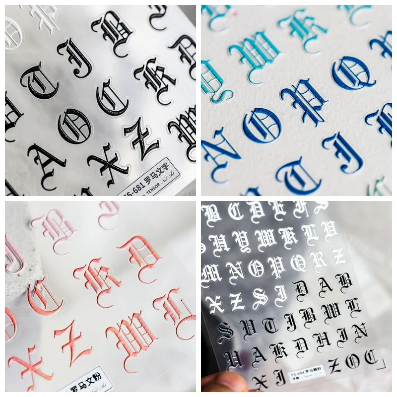 Наклейки для ногтей в готическом стиле, буквы s, надписи, алфавит, 1 шт.