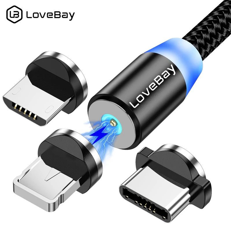 Светодиодный магнитный USB-кабель Lovebay для iphone 12 mini 11 Samsung Xiaomi, кабель быстрой зарядки типа C, микро-USB, шнур, провод