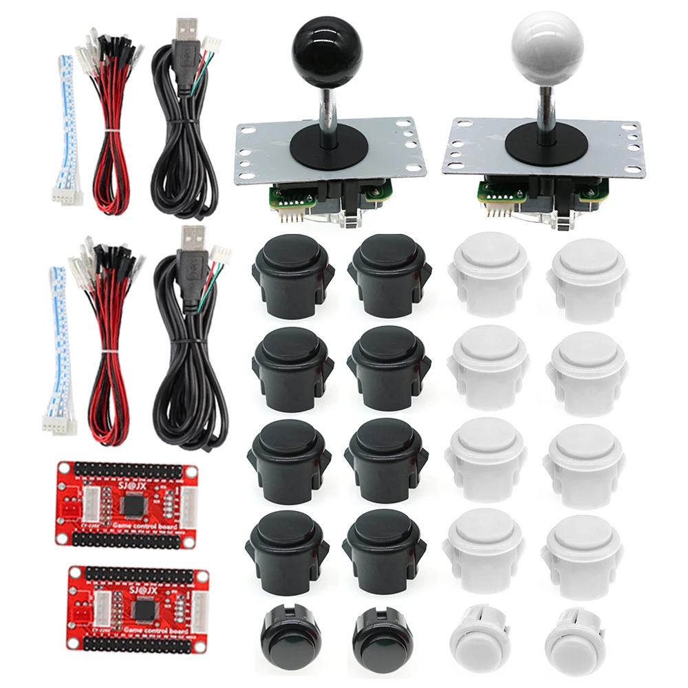 One kit include :2 x USB encode(Suppor PC PS3)2 x USB cable2x /8 way 5PIN joystick(Shaft length 32mm)2x 5Pin cable16 x 30MM push button4 x 24MMpush button20x 2.8mm button cable