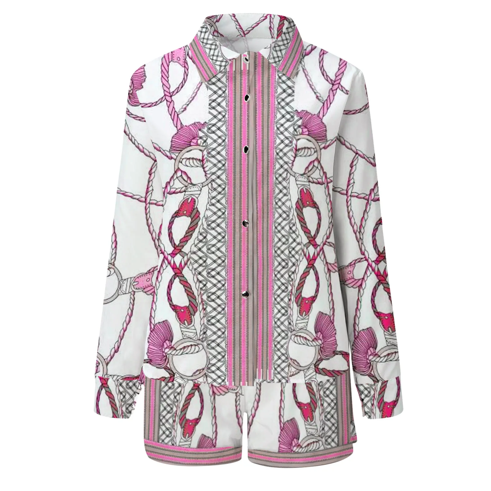 Женский комплект из двух предметов: рубашка с длинным рукавом и принтом на пуговицах, топ и шорты