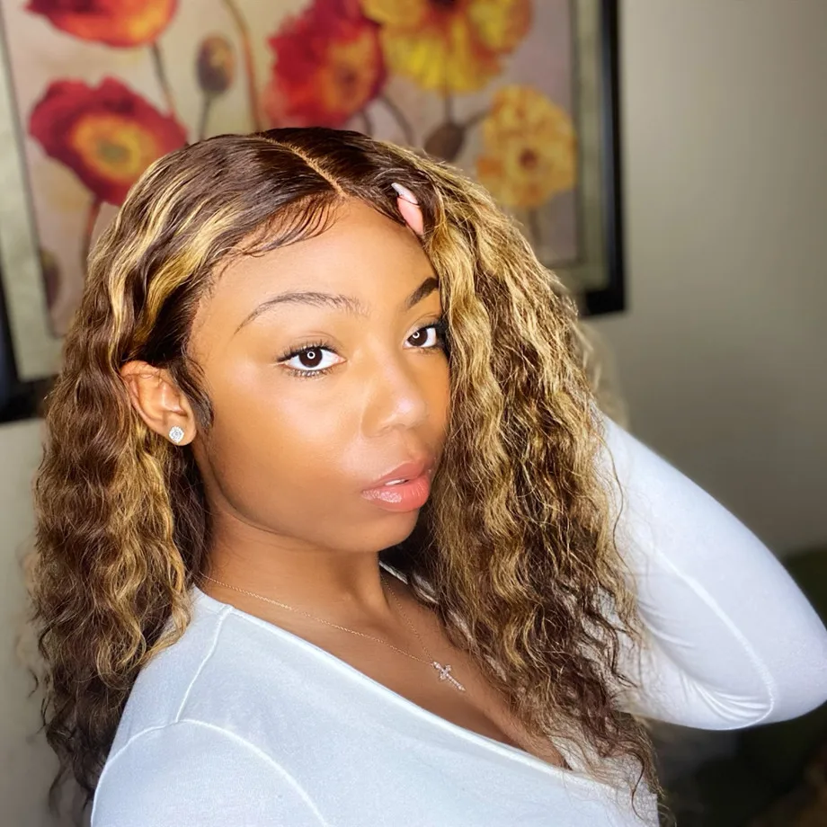 Парик с короткой волнистой волной, парик с Т-образной частью, парики с кружевом, человеческие волосы, бразильские кудрявые волосы, парик с Омбре для женщин, натуральный парик с волнистой волной