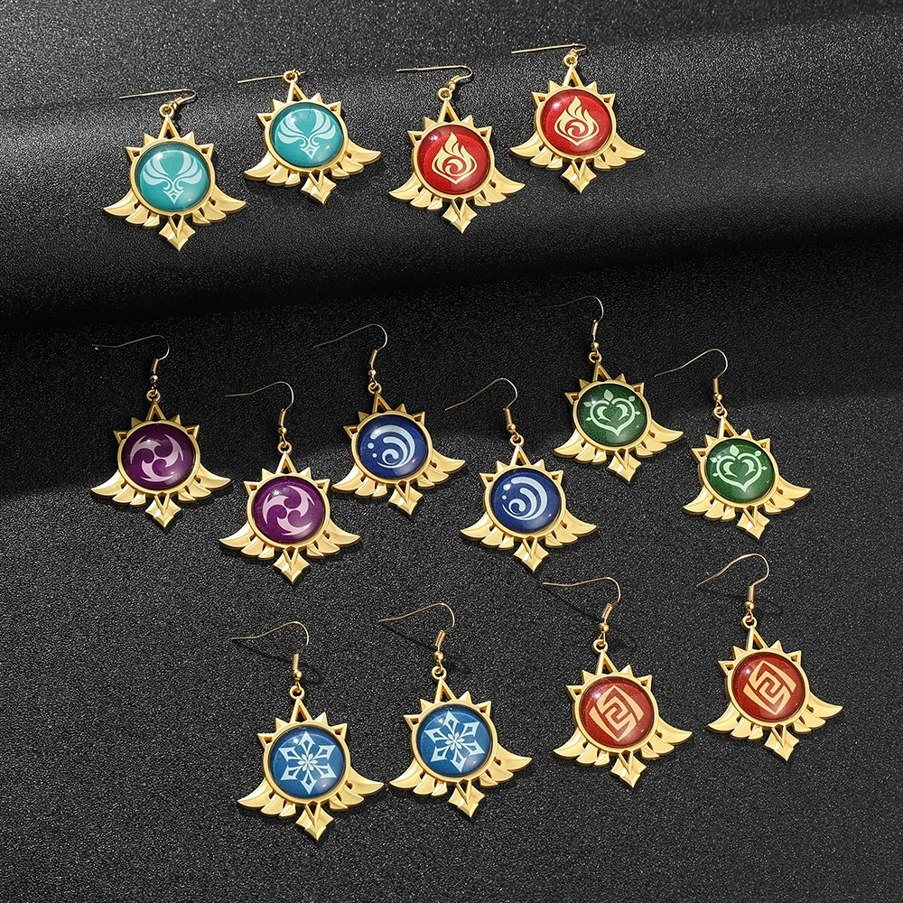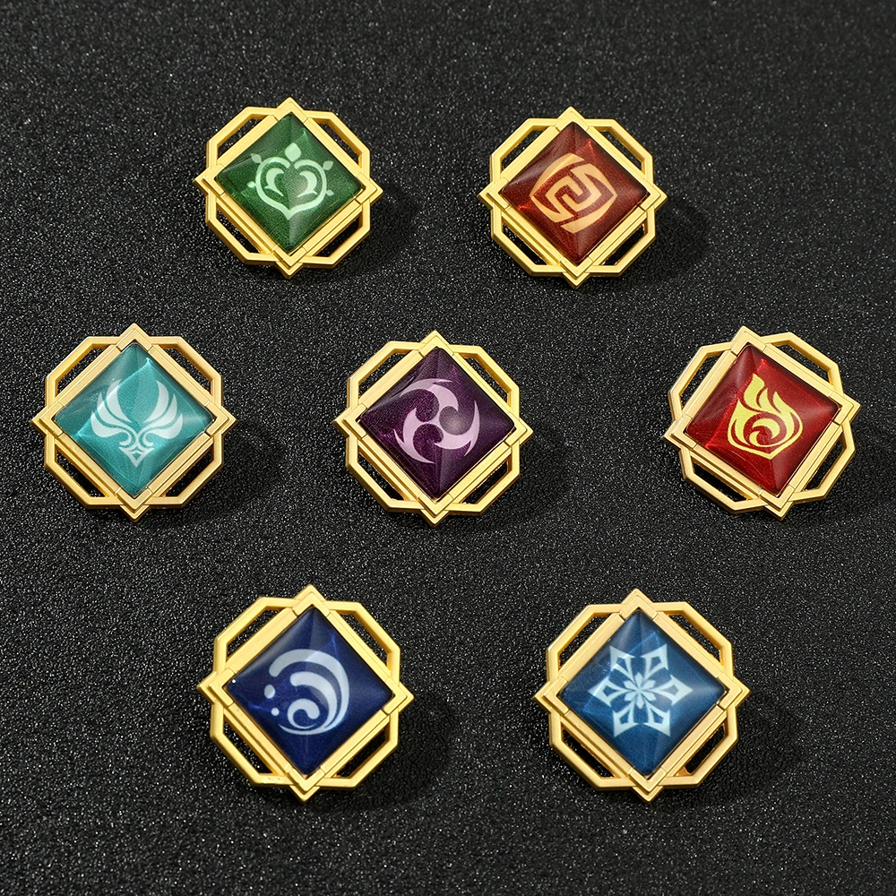 Брелок для ключей Genshin Impact, с гидро-Пиро, Dendro, Anemo, элек...