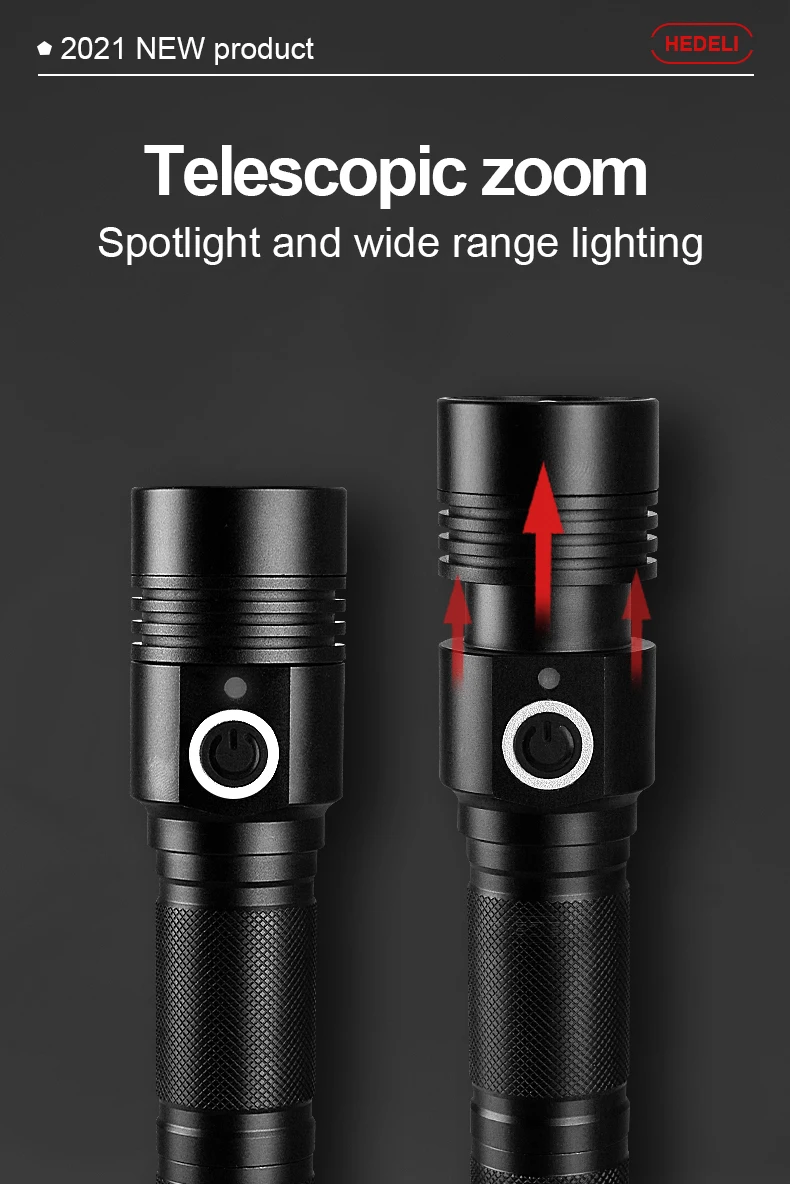 1. Самый сильный тактический фонарик, с помощью XHP110 светодиодный фитиль, максимальная мощность может достигать 500000 люмен.2. Изготовлен из авиационного алюминиевого сплава, прочный военный анодированный алюминий.3. Вход Micro USB, удобный для зарядки в различных средах.4. Используйте аккумуляторы 18650 или 26650. Внутренняя проводка использует высокоэффективную схему повышения для максимального использования батарей.5. Класс водонепроницаемости достигает IPX-6, водонепроницаемый, его можно использовать в дождливые дни, но нельзя положить в воду.6. 7 уровней светильник, XHP110 (высокая-низкая-вспышка); COB (сильный-слабый-красный светильник-красная вспышка). Быстрый двойной щелчок, чтобы открыть COB.7. Это эквивалентно банку мощности, который может заряжать мобильные телефоны.