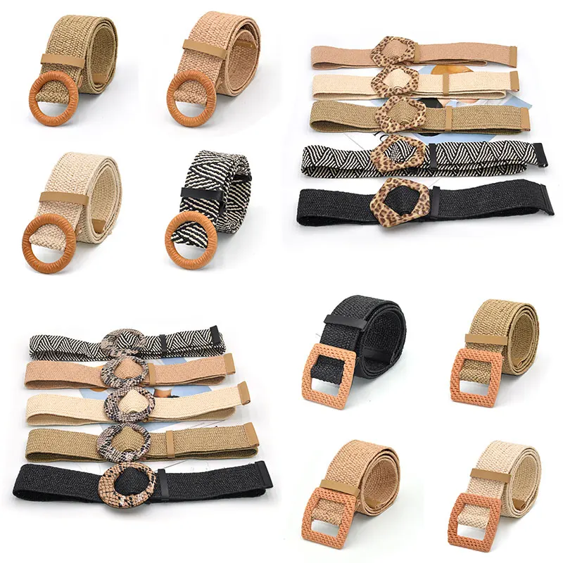 Винтажный широкий пояс в богемном стиле, летний плетеный пояс с деревянной пряжкой, женский ремень из искусственной льна
