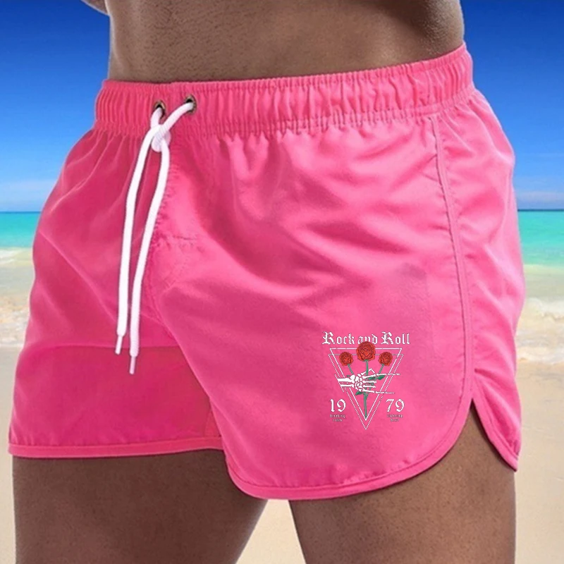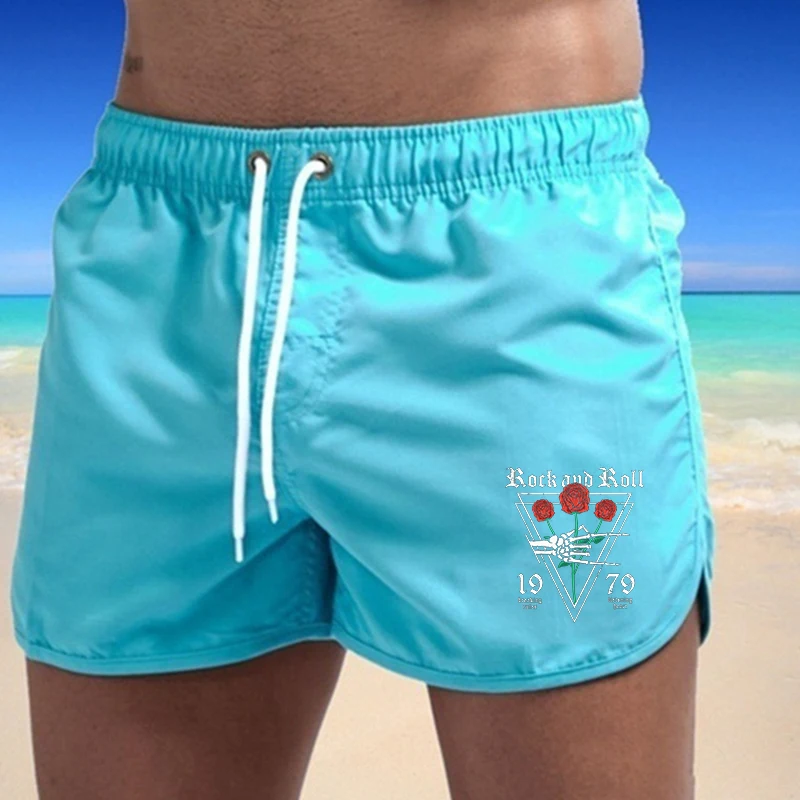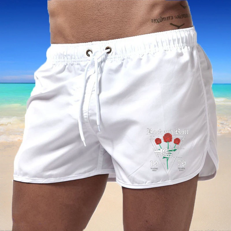 Мужские спортивные шорты Rock and Roll, повседневные пляжные шорты для фитнеса с принтом розы, лето 2021
