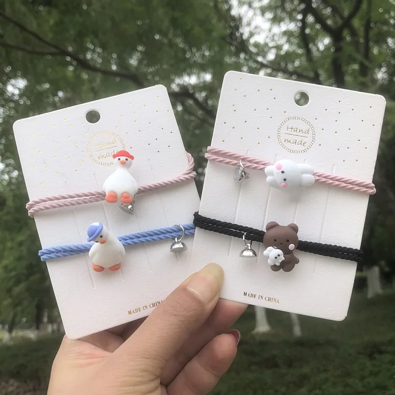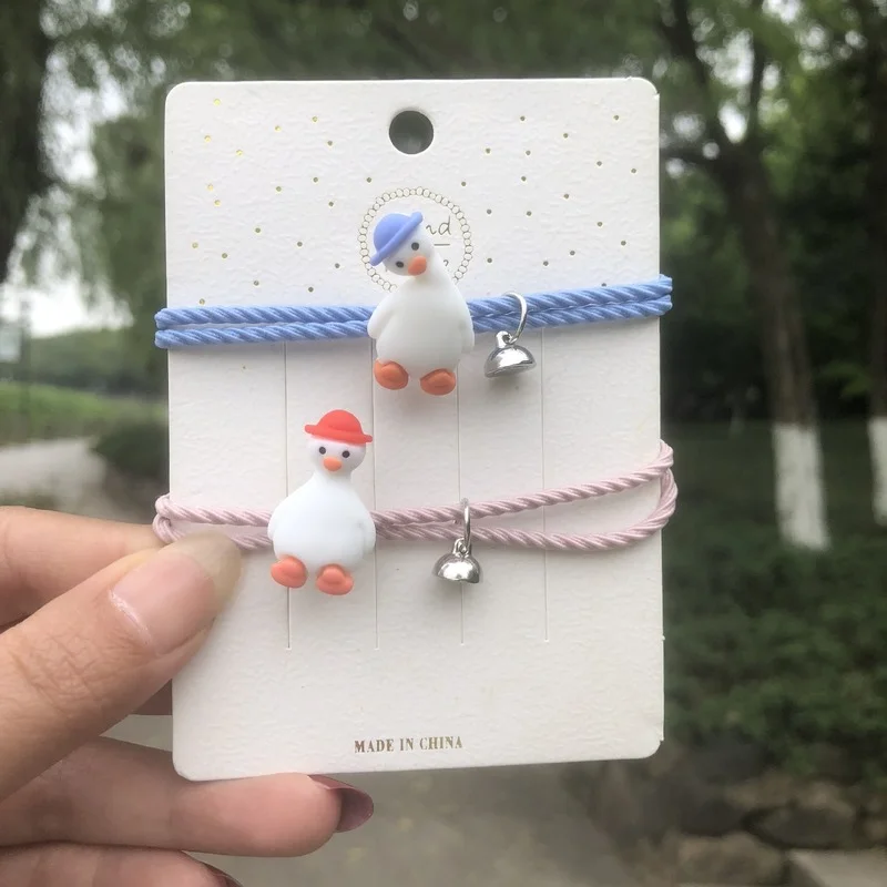 Милый Плетеный женский браслет с уткой, 2 шт.компл., яркий веревочный браслет