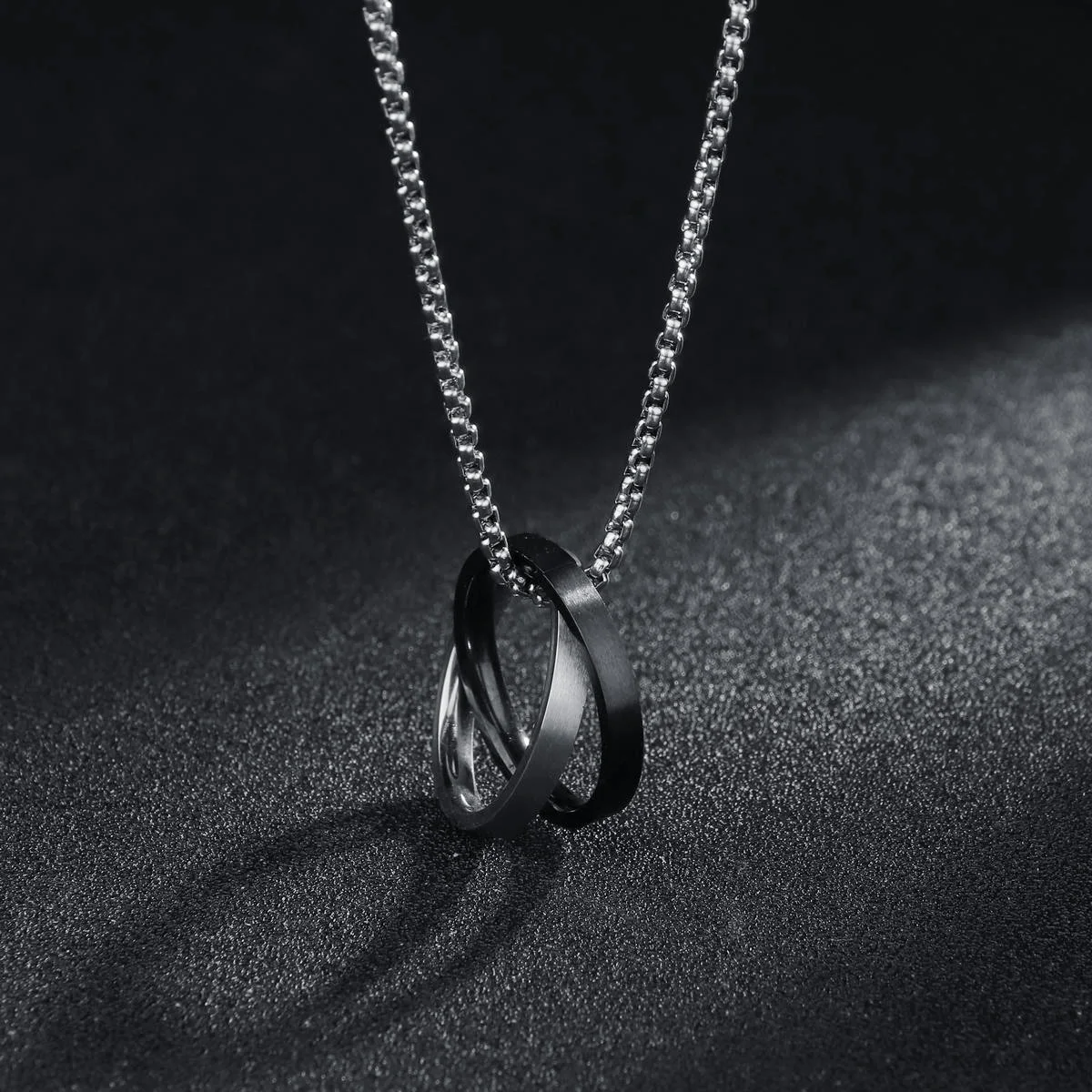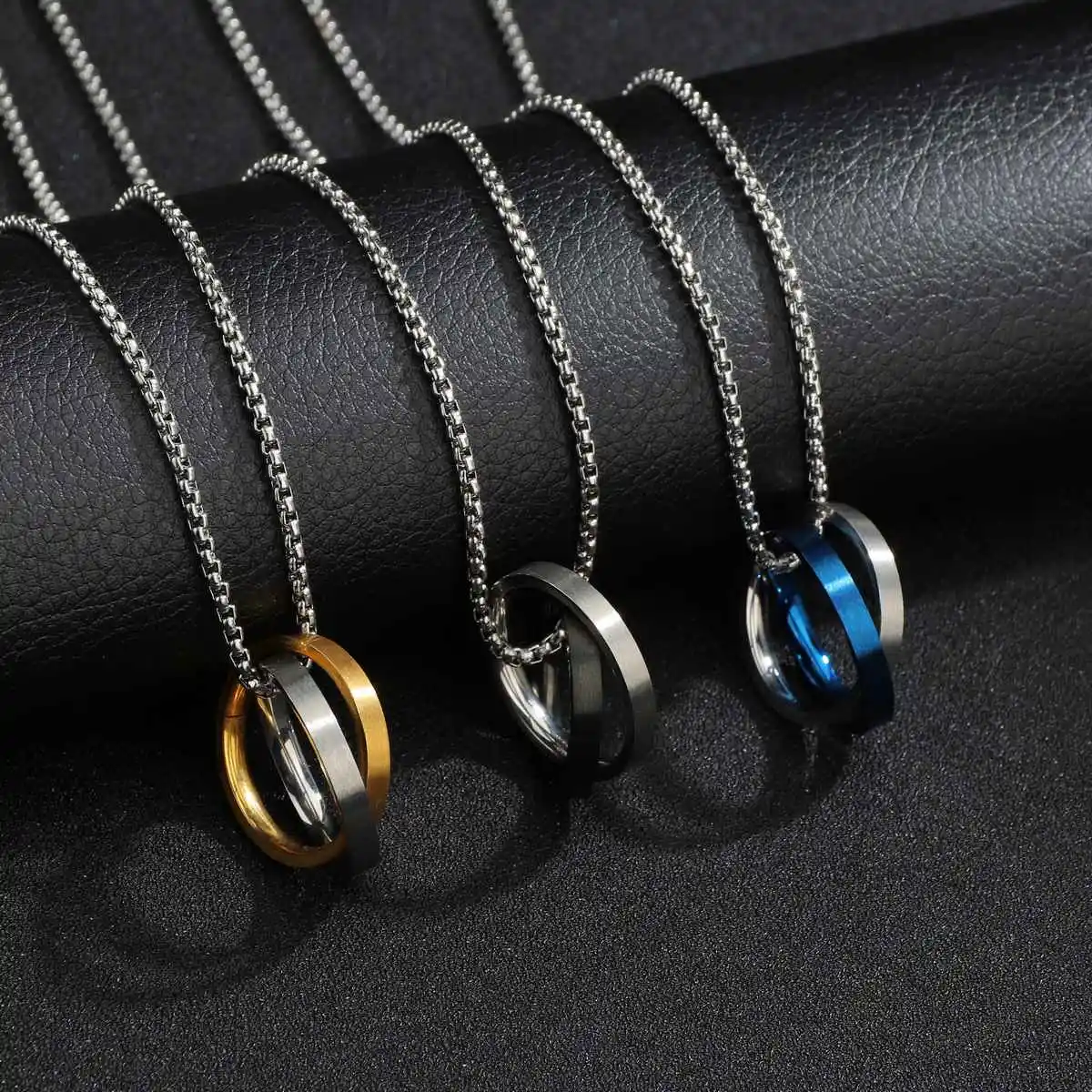 Модное простое двойное кольцо из нержавеющей стали с золотистыми и серебристыми вставками для мужчин и женщин, кольцо с подвеской, ожерелье, ювелирные изделия, подарок Вечерние