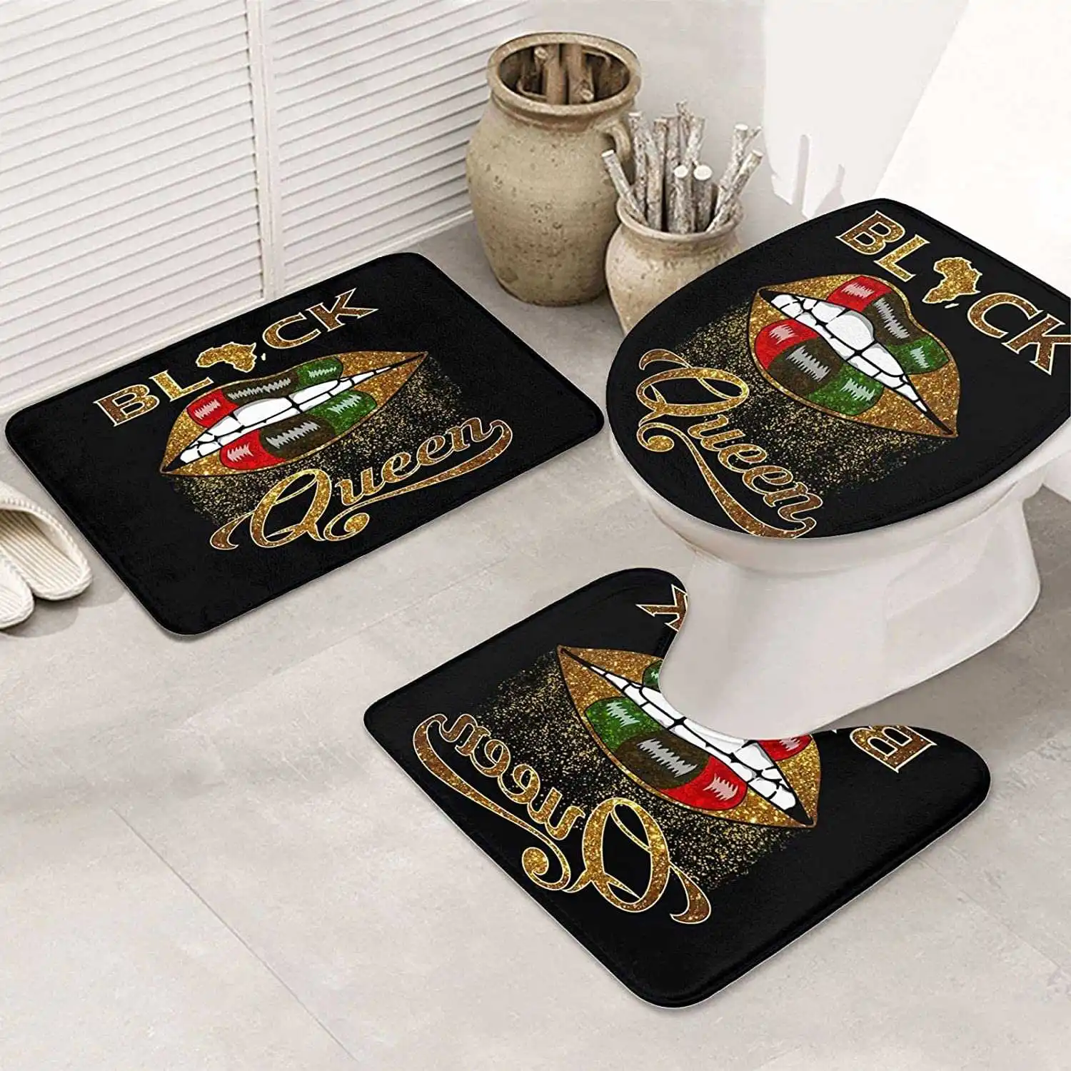 Водонепроницаемая занавеска для душа, набор черных, королевских, красных губ, нескользящий коврик для сиденья унитаза, декор для ванной комнаты
