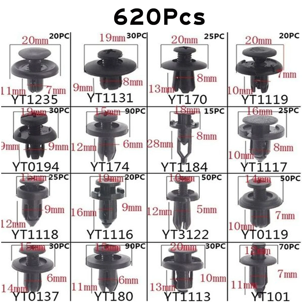Besper 620 шт. смешанные автомобильные крепежные зажимы, автомобиль...