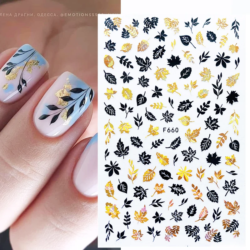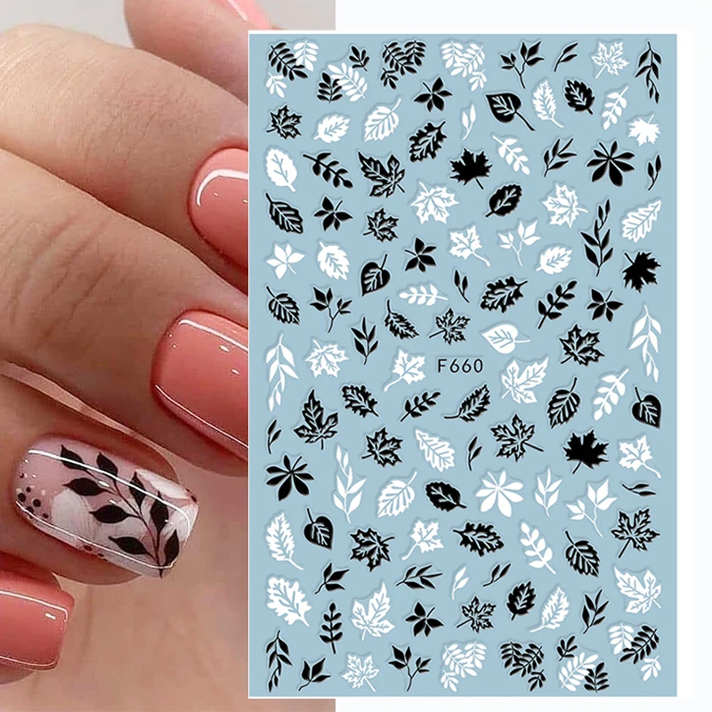 1 шт. 3D Серебряные Золотые черные белые листья бабочки Слайдеры для ногтей украшение для ногтей самодельные наклейки для ногтей наклейки для маникюра
